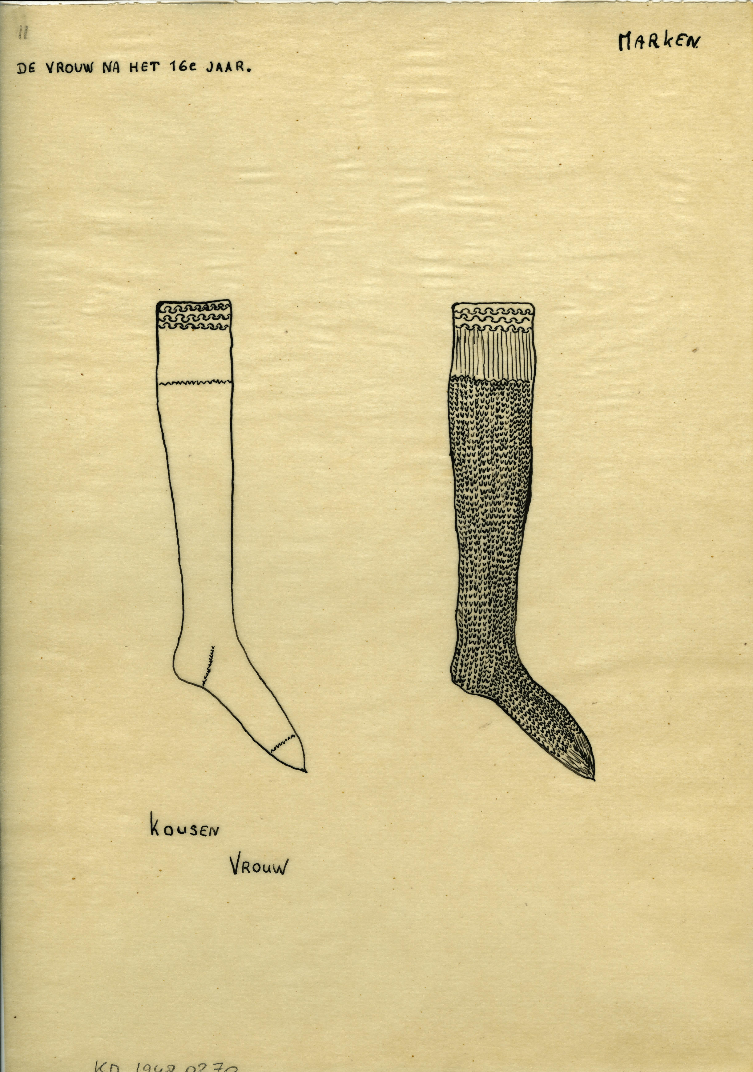 Tekening van kousen voor een vrouw op Marken na het zestiende jaar.