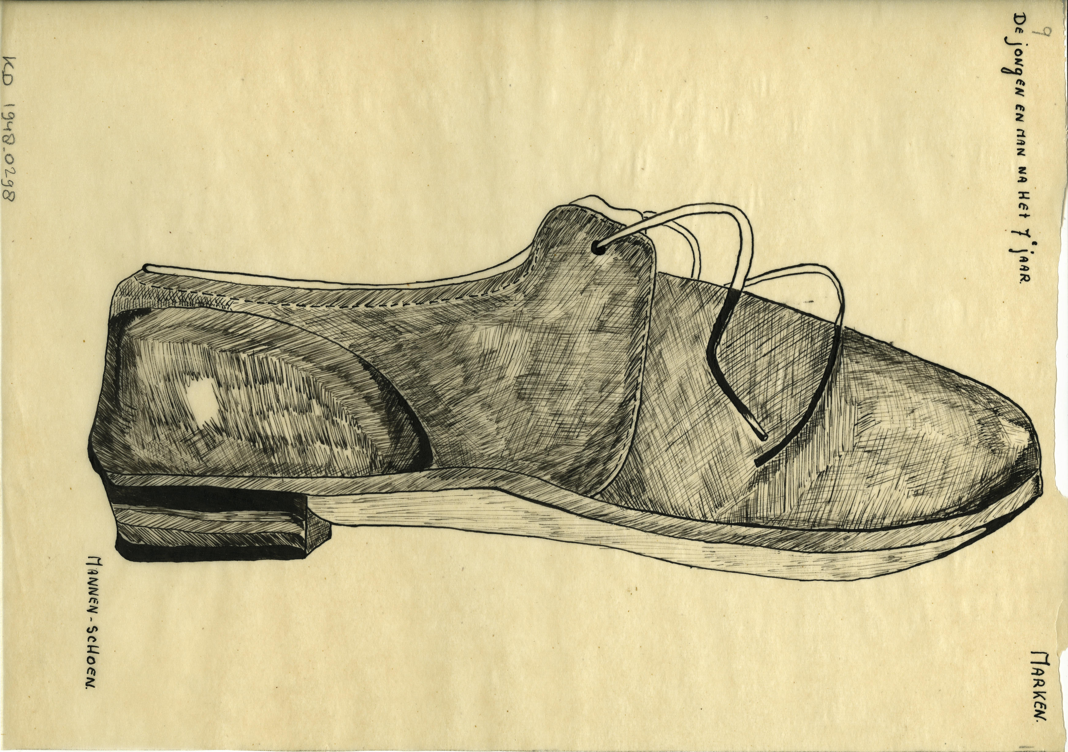 Tekening van een mannenschoen, Marken (patroontekening)