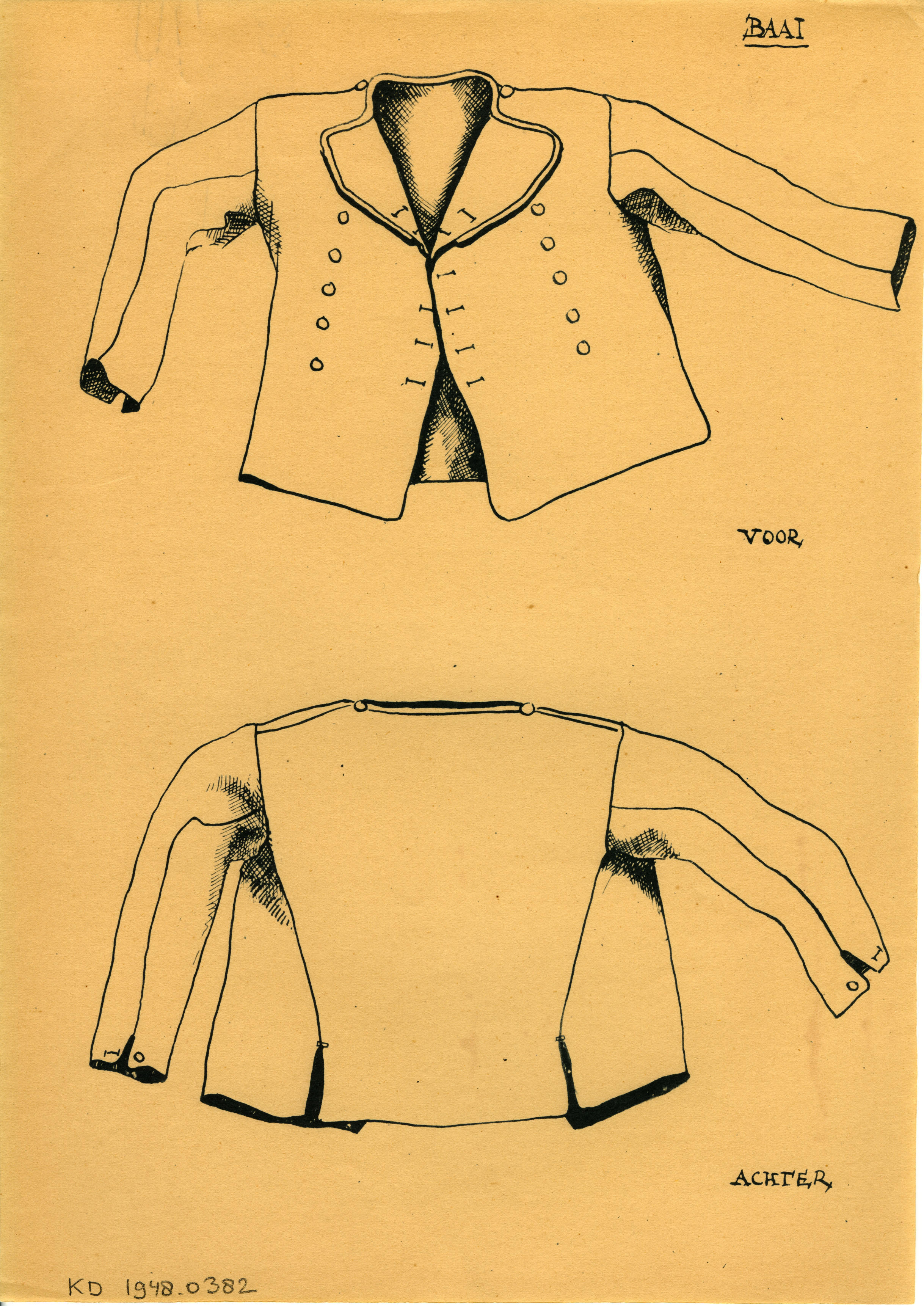 Tekening van de voor- en achterzijde van een baai van Marken.