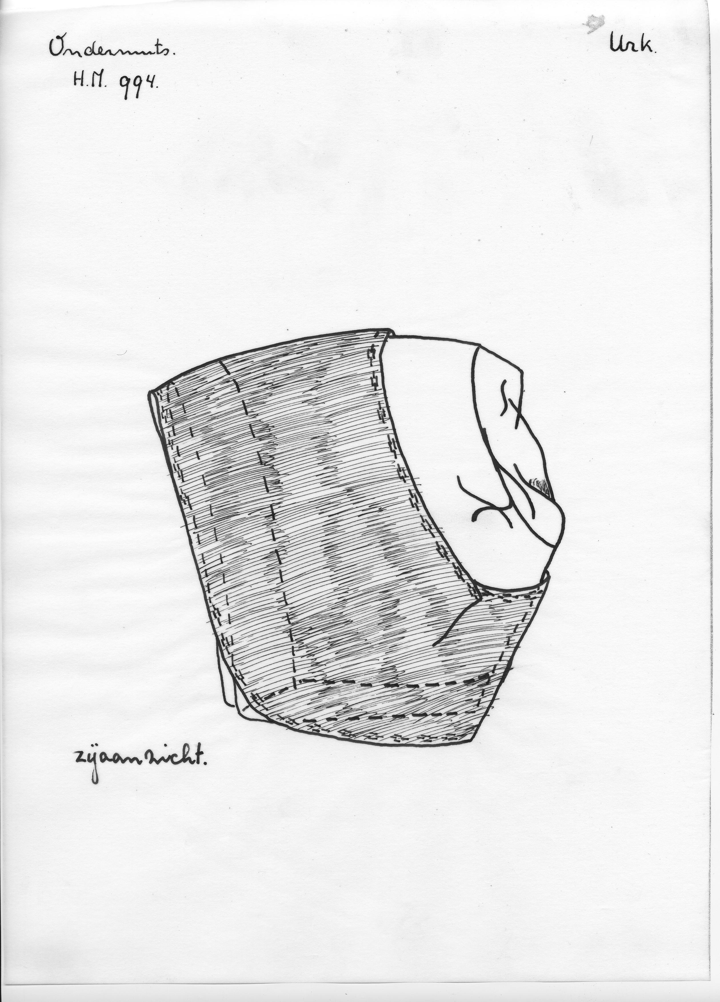 Tekening van het zijaanzicht van een ondermuts van Urk.
