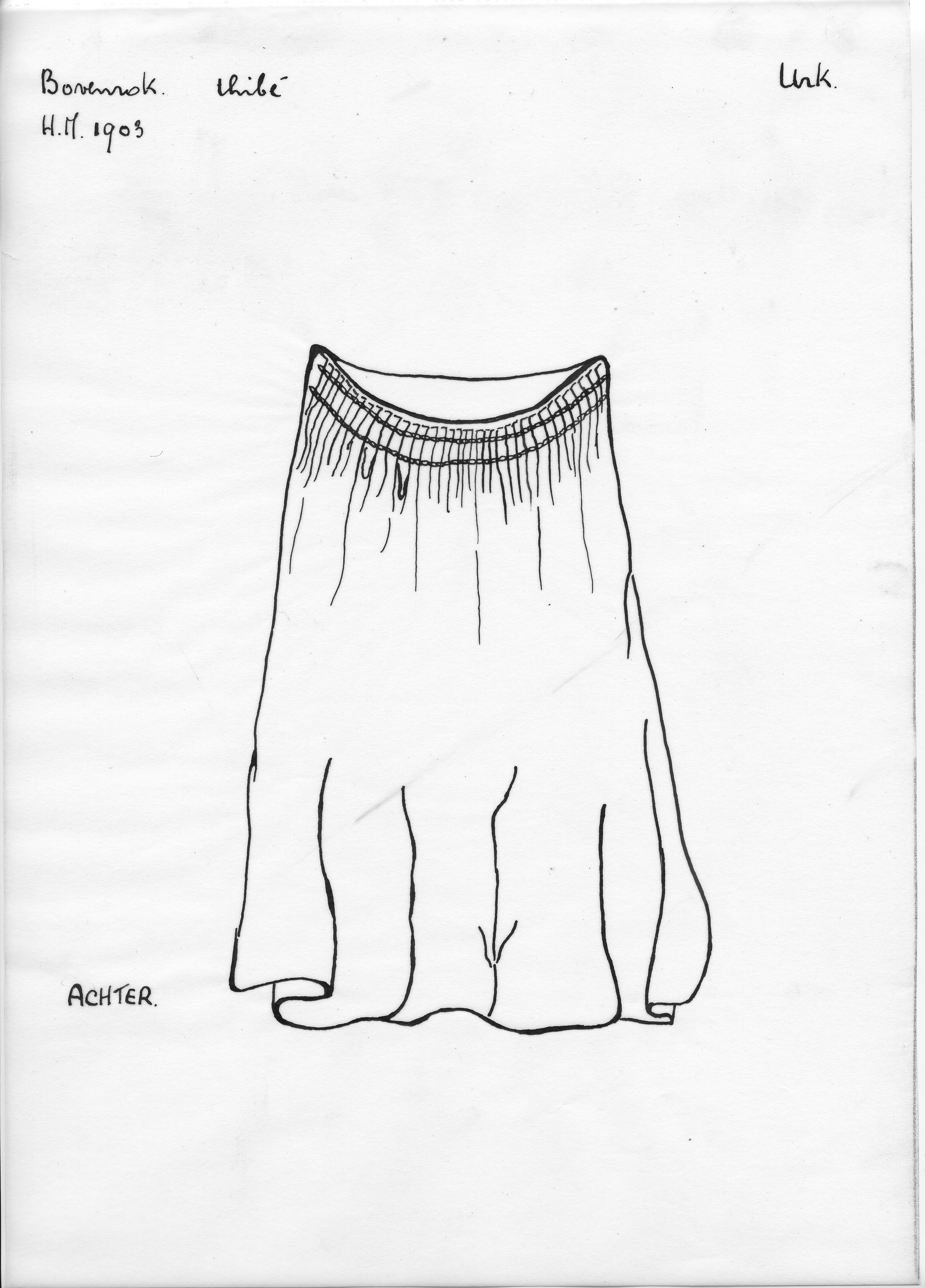 Tekening van de achterzijde van een tibet bovenrok van Urk.