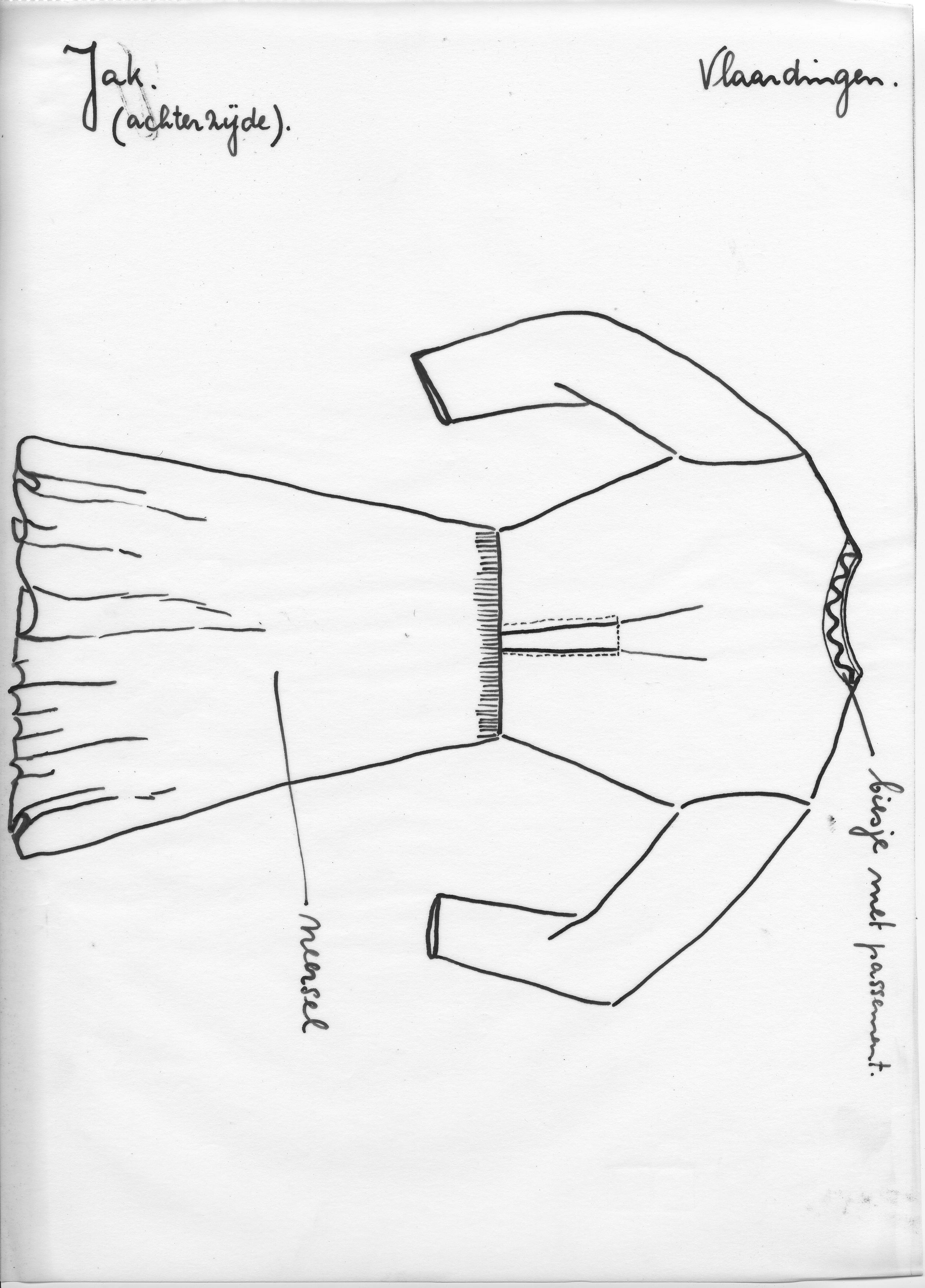 Tekening van de achterzijde van een jak uit Vlaardingen.