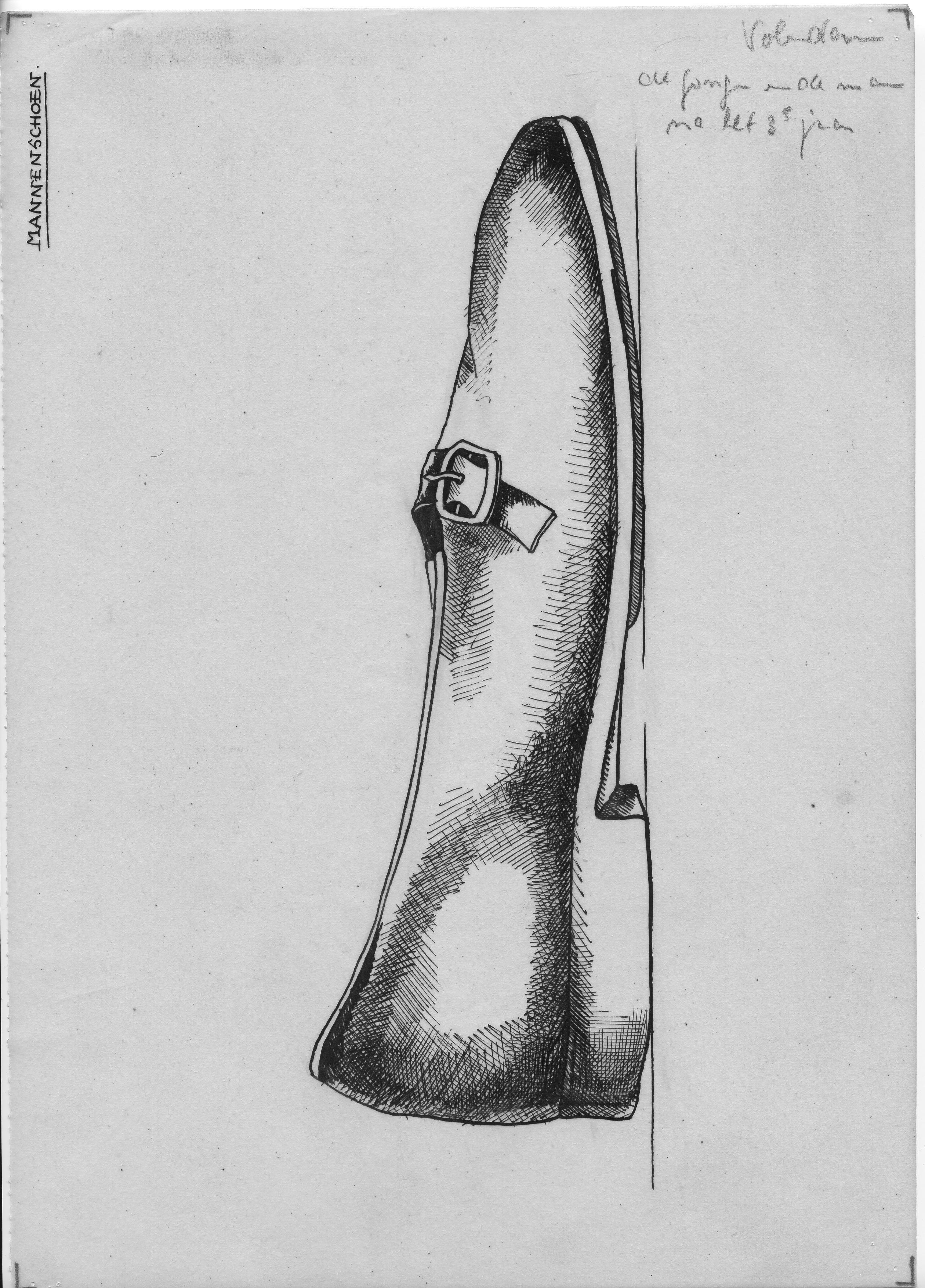 Tekening van een mannenschoen, Volendam (opmetingstekening)