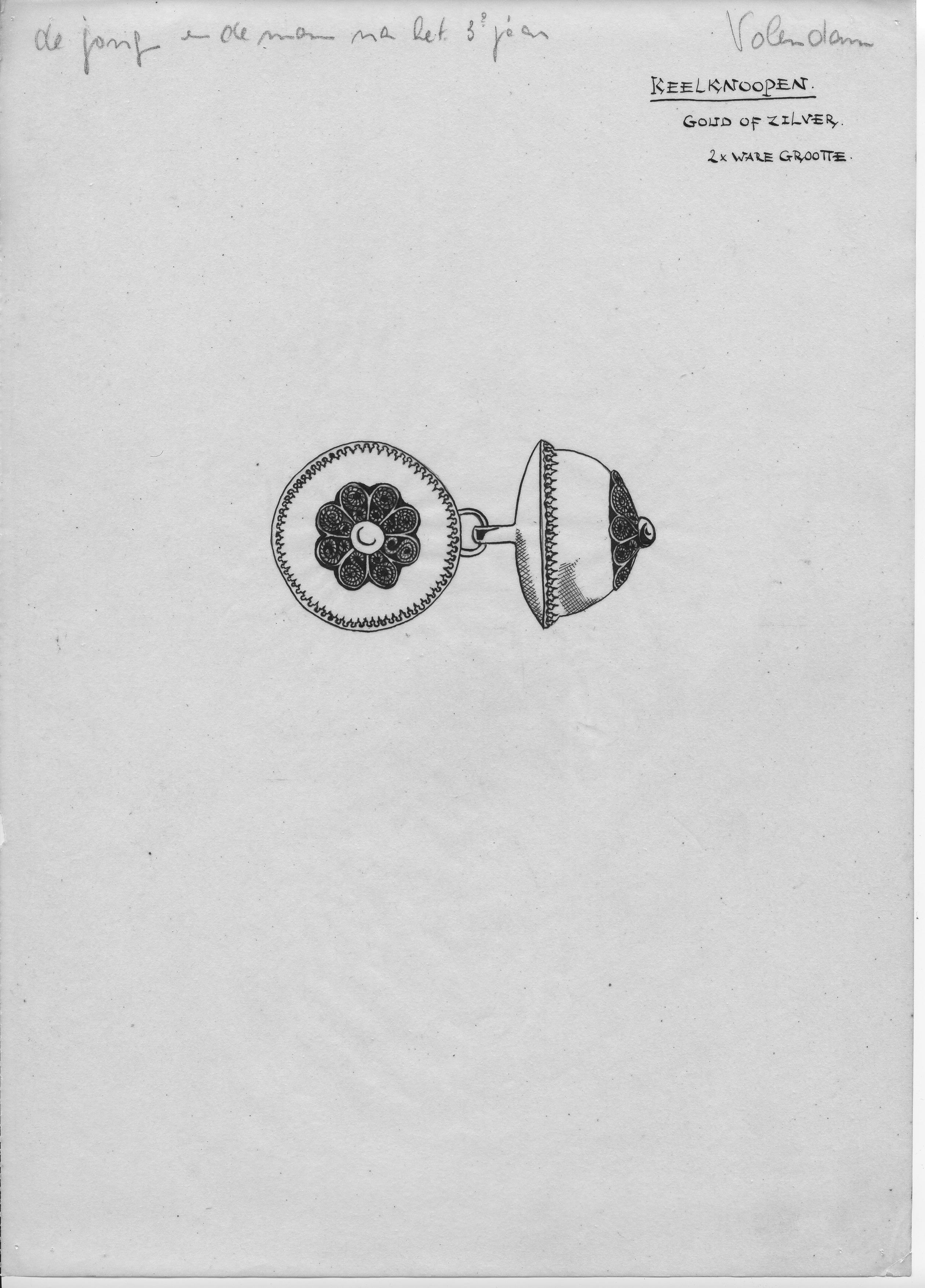 Tekening van keelknopen uit Volendam voor mannen en jongens na het derde jaar.