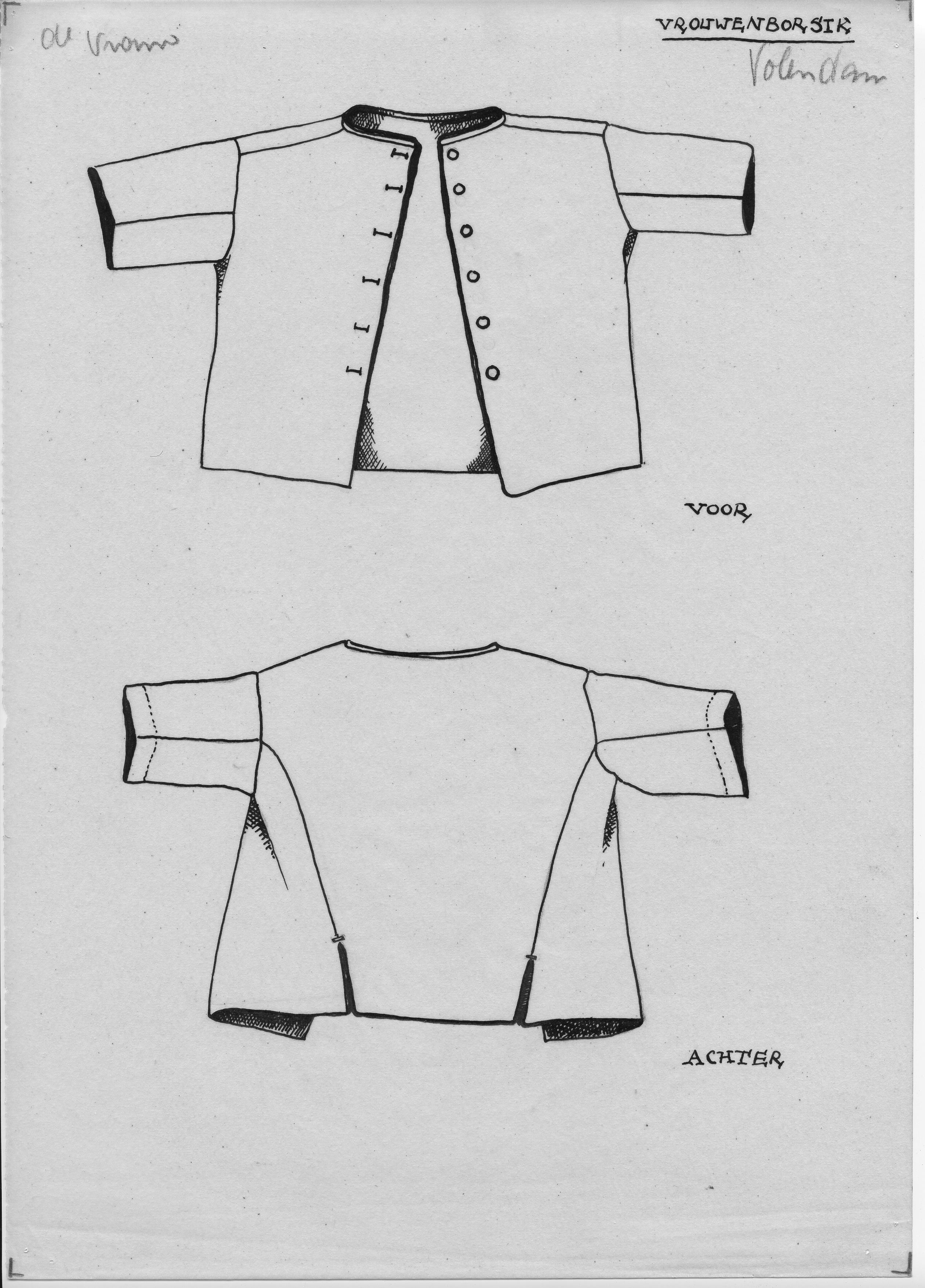 Tekening van een vrouwenborsik, Volendam (opmetingstekening)