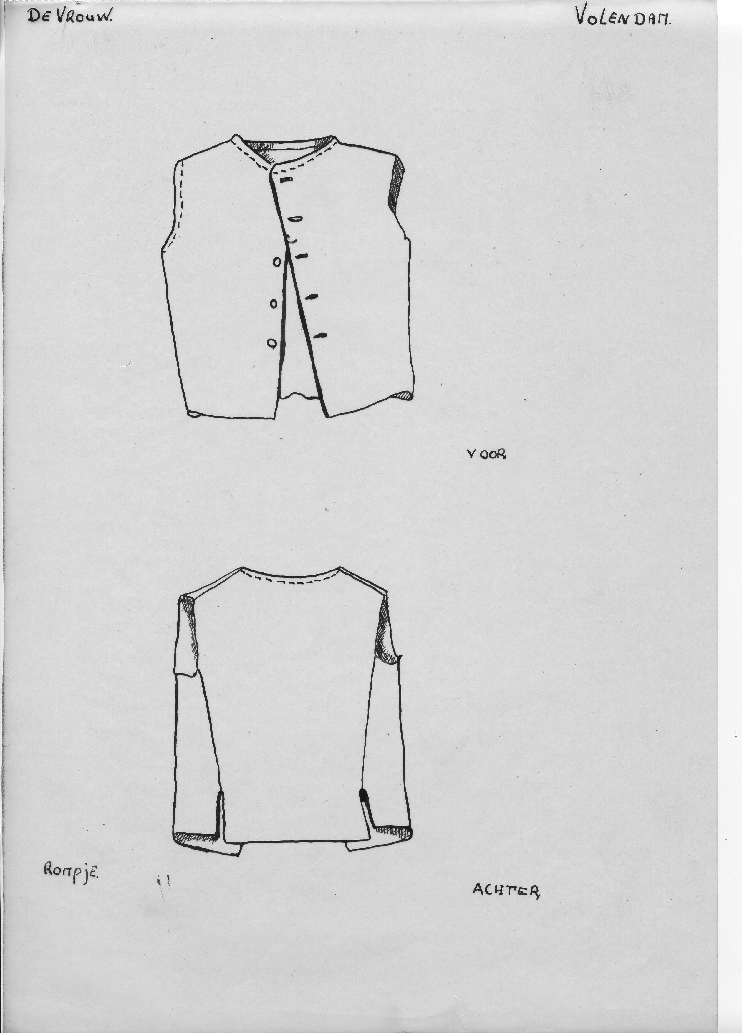 Tekening van een vrouwenrompje, Volendam (opmetingstekening)