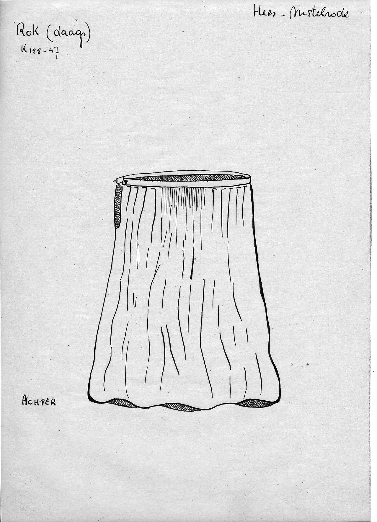 Tekening van de achterzijde van een daagse rok uit Heesch en Nistelrode.
