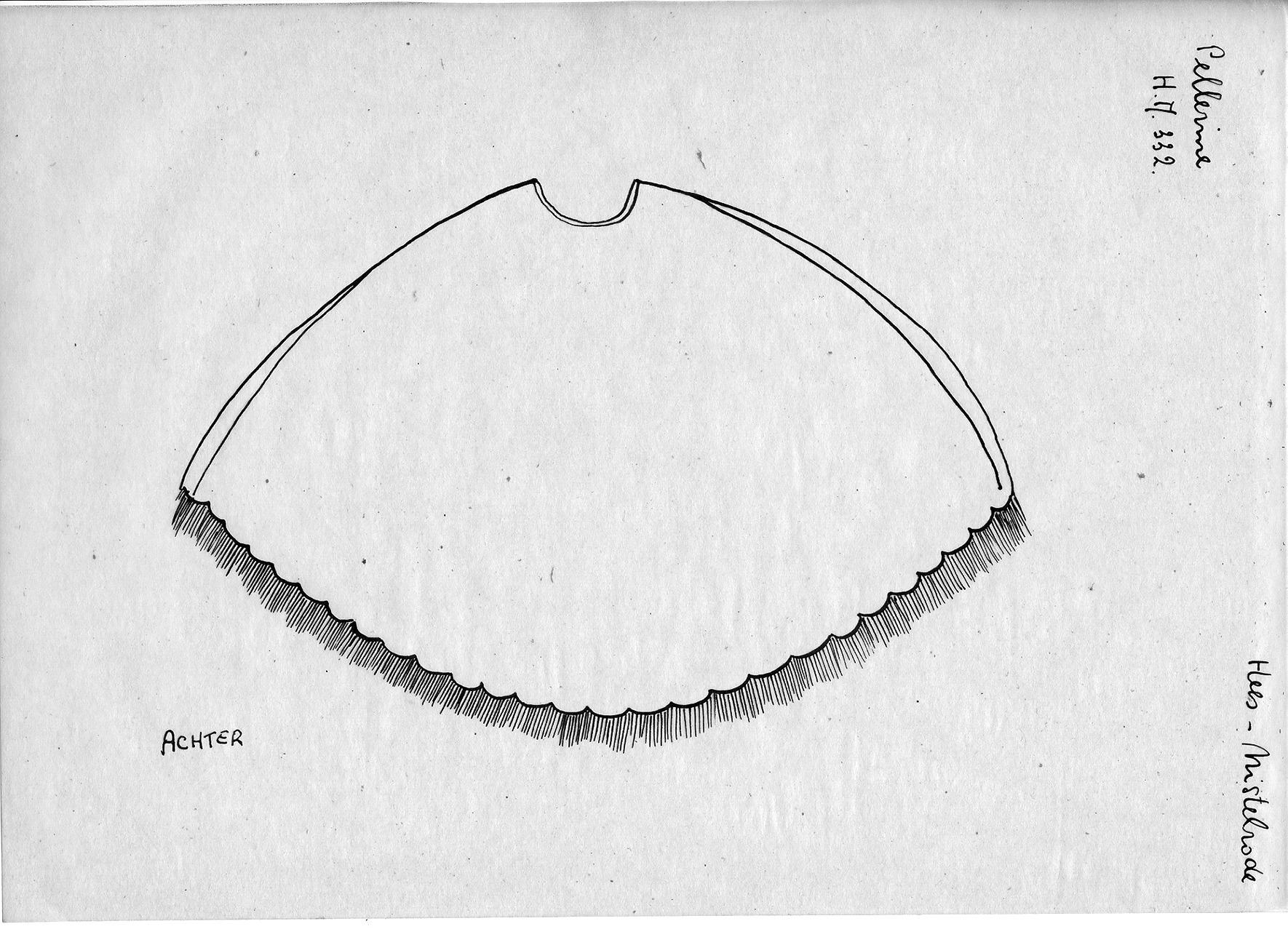 Tekening van de achterzijde van een pelerine uit Heesch en Nistelrode.