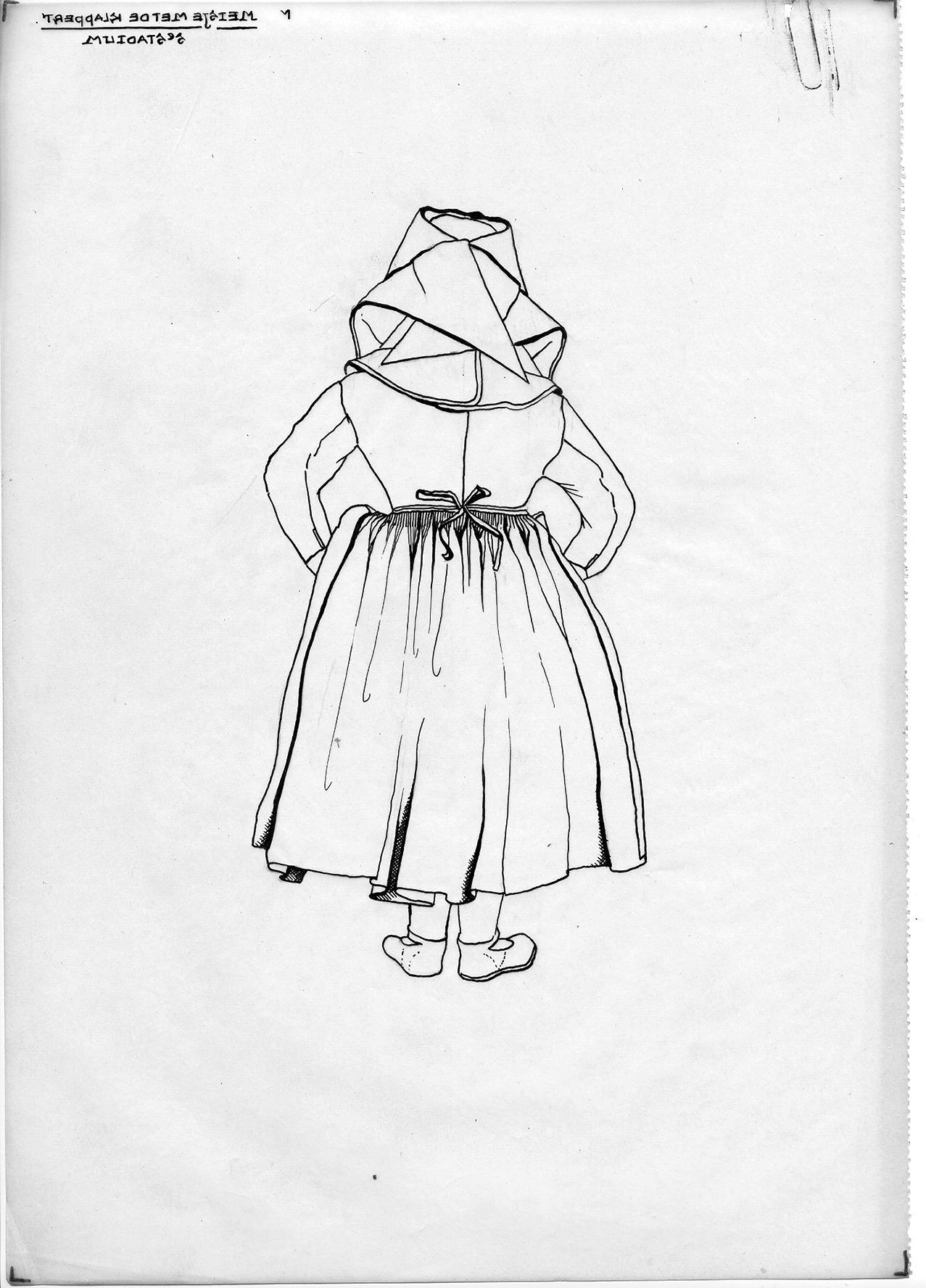 Tekening van het meisje met de 'klappert', Hindeloopen (opmetingstekening)