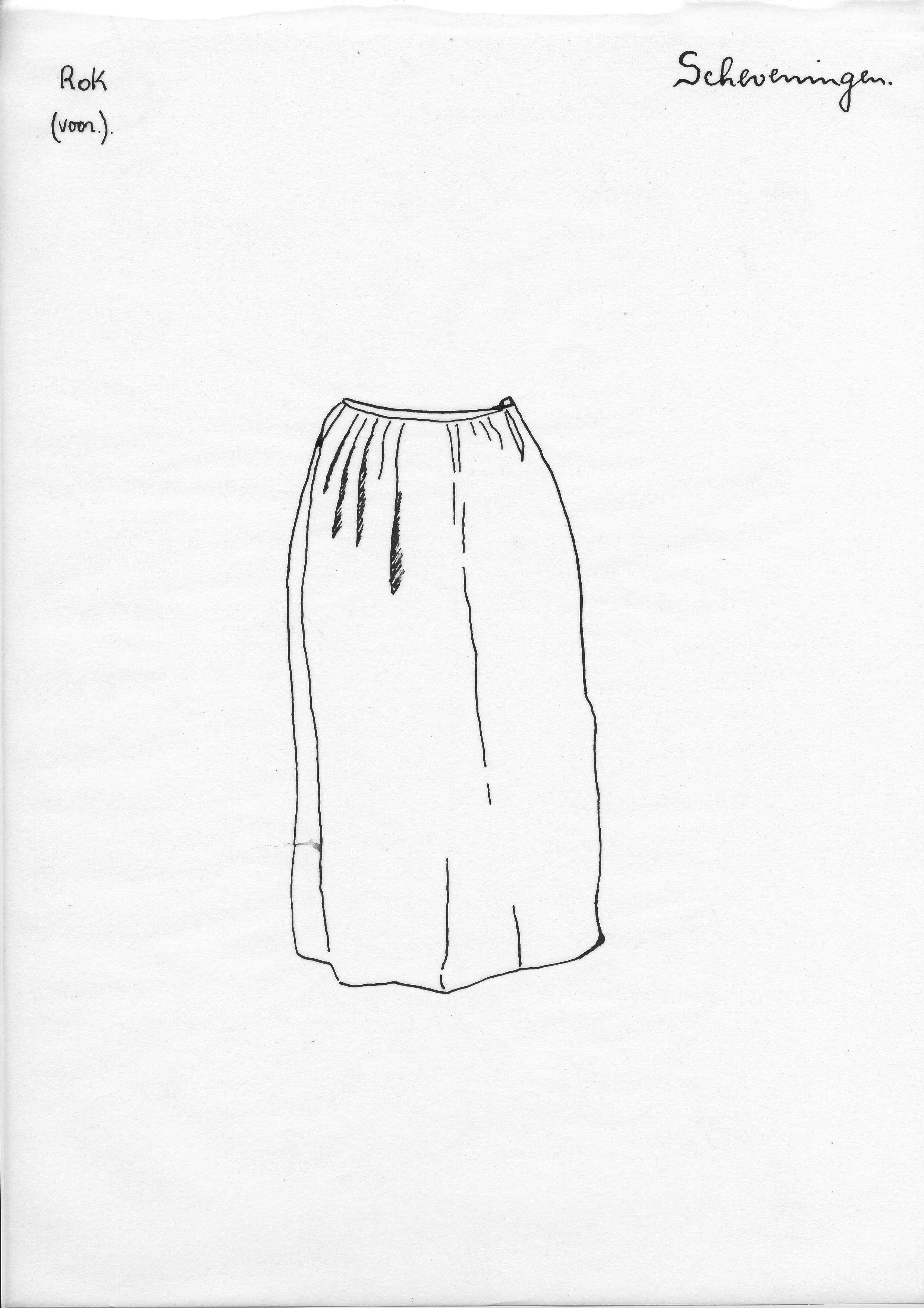 Tekening van de voorzijde van een rok uit Scheveningen.