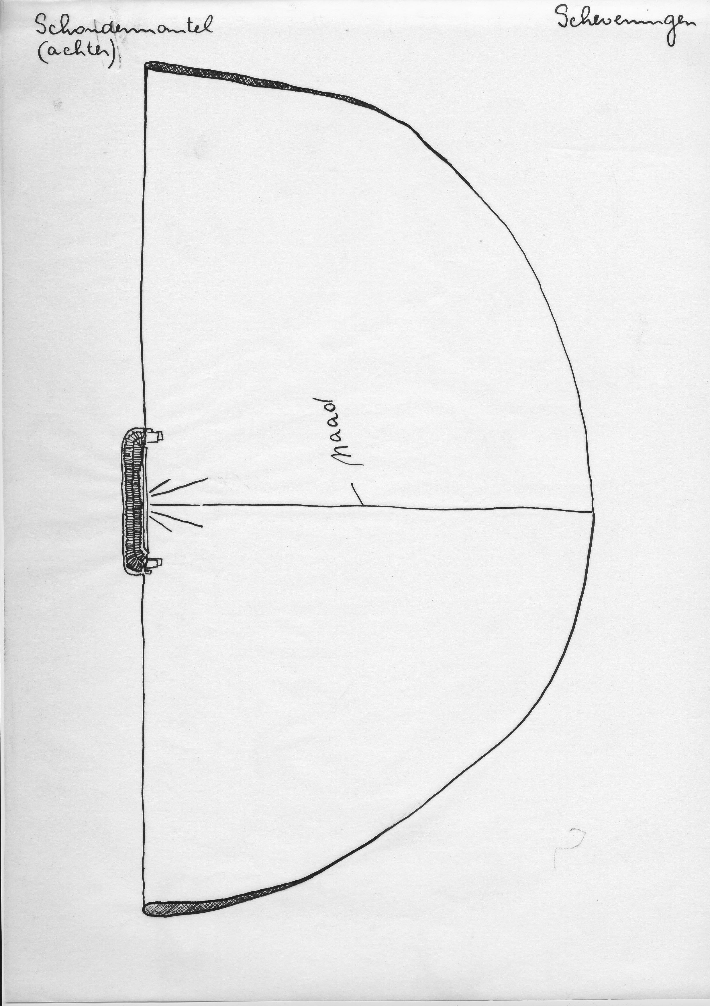 Tekening van de achterzijde van een schoudermantel uit Scheveningen.