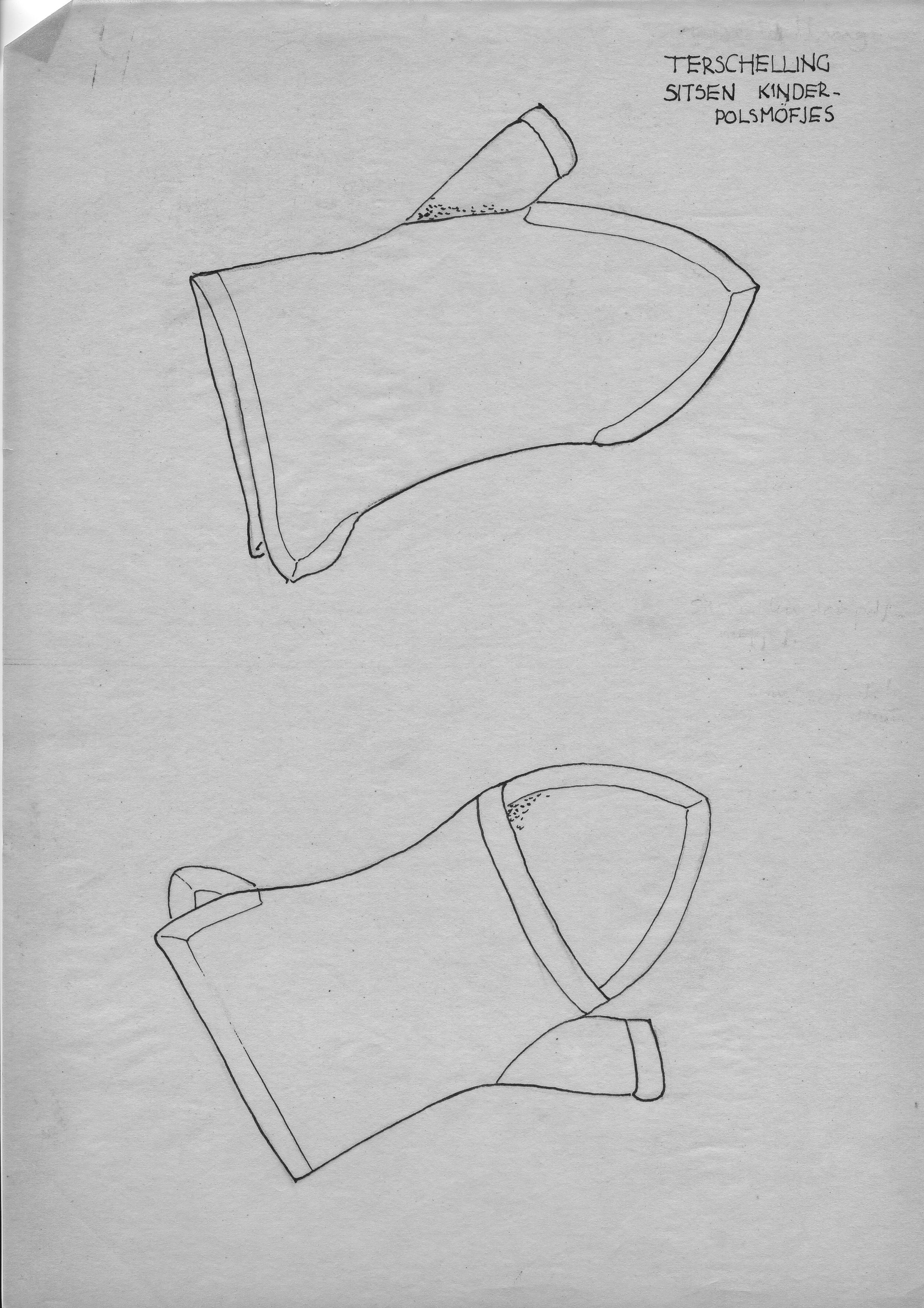 Tekening van sitsen kinderpolsmofjes, Terschelling (opmetingstekening)
