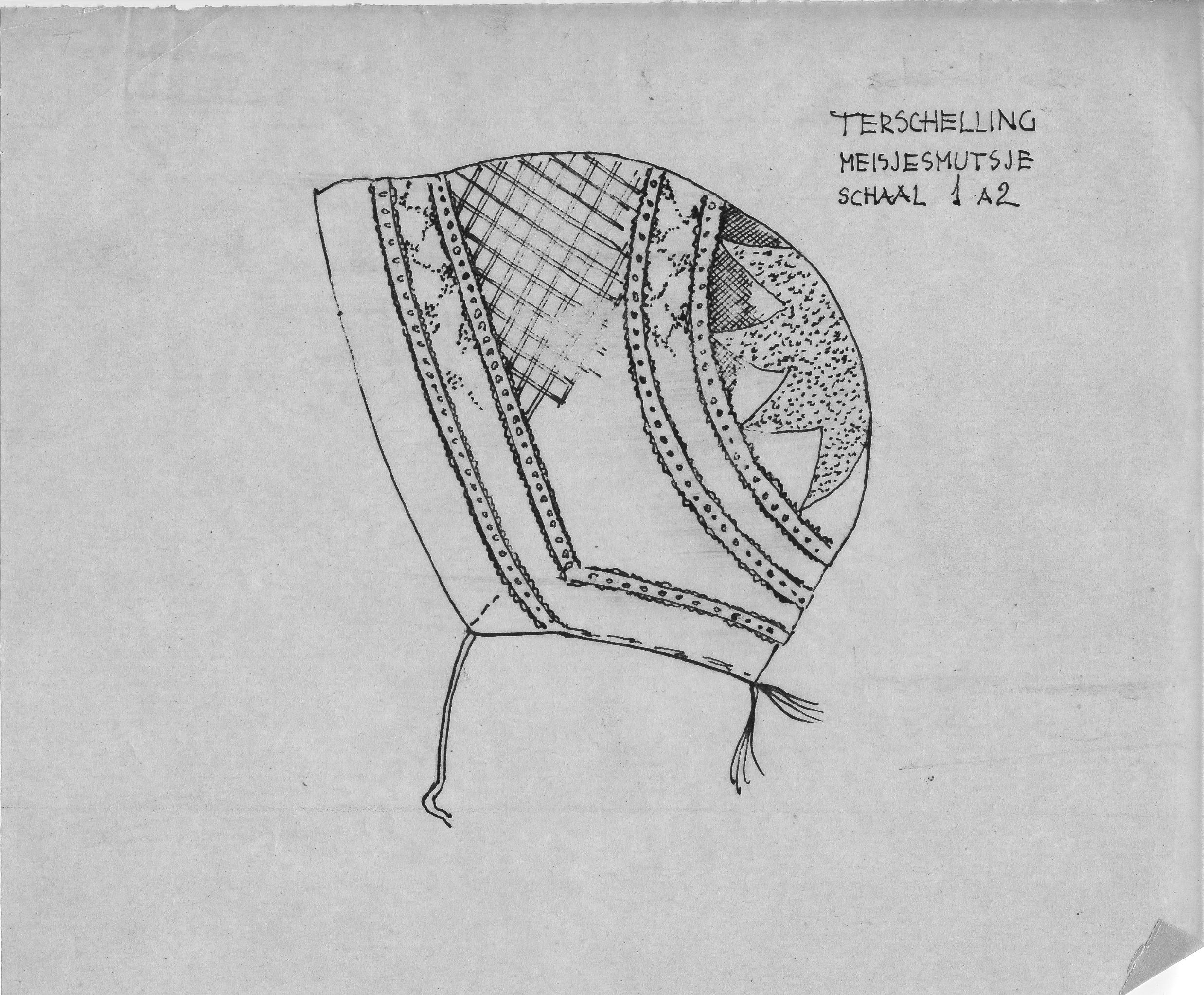 Tekening van een meisjesmutsje, Terschelling (opmetingstekening)