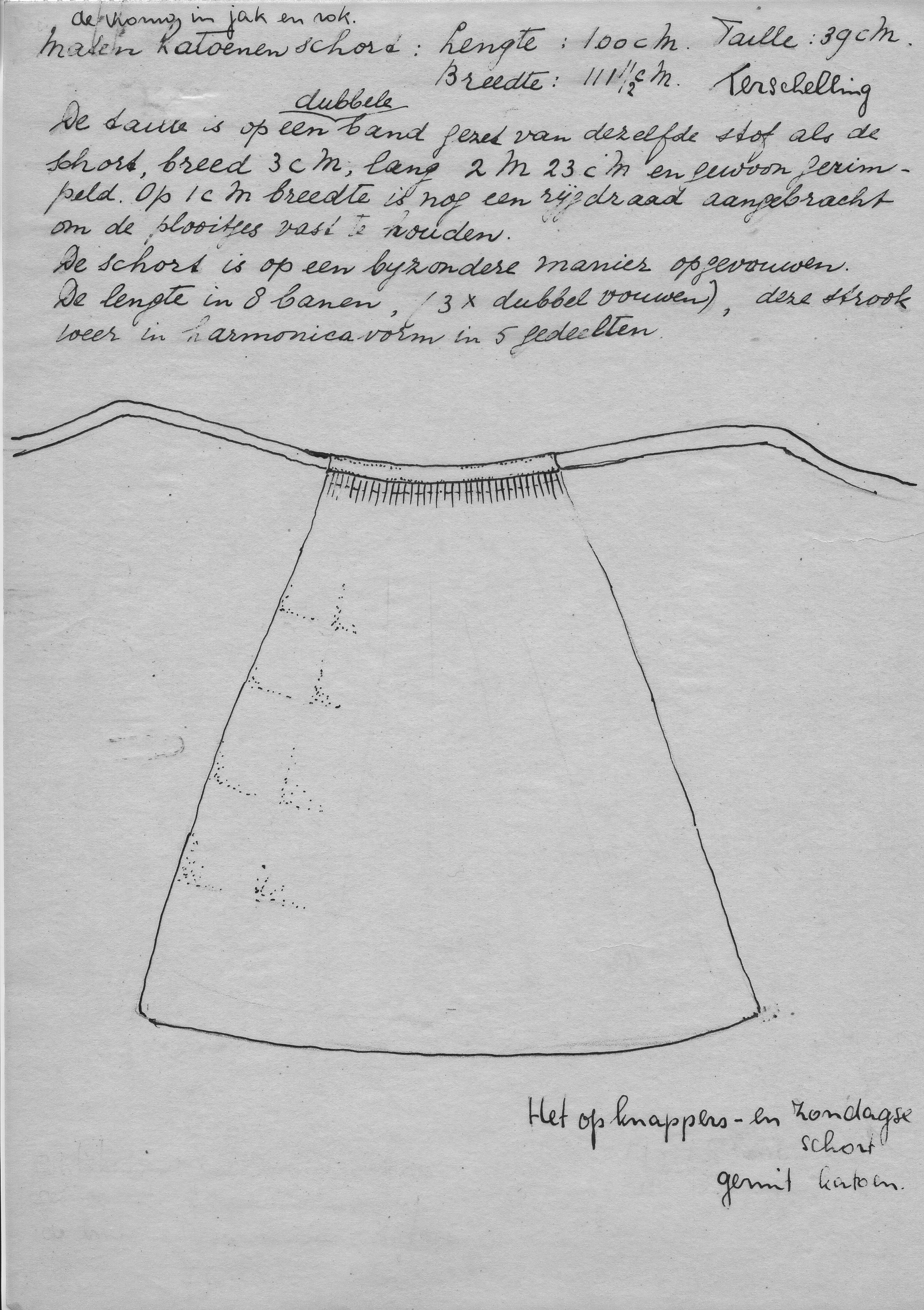 Tekening van een opknappers- en zondags schort, Terschelling (opmetingstekening)