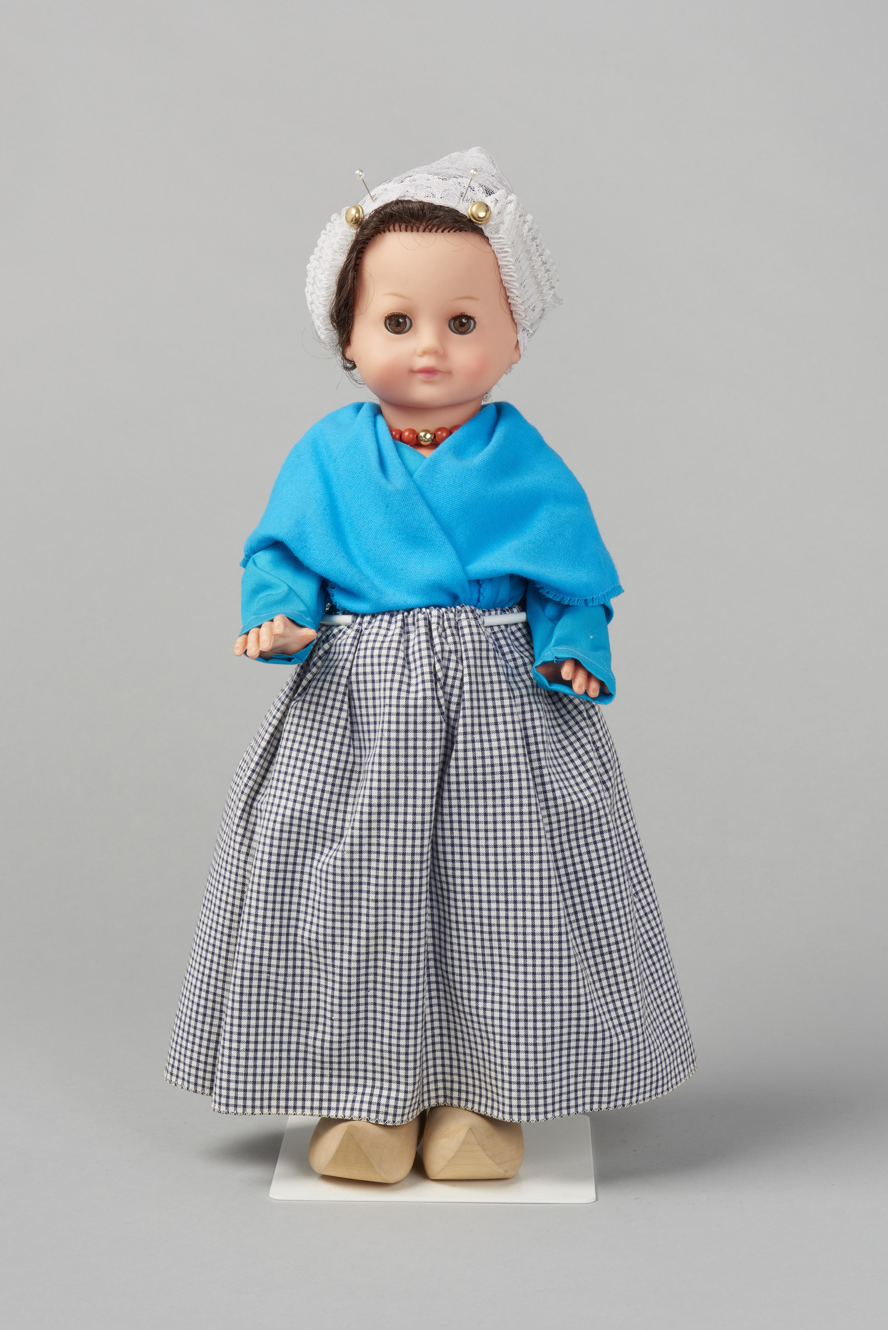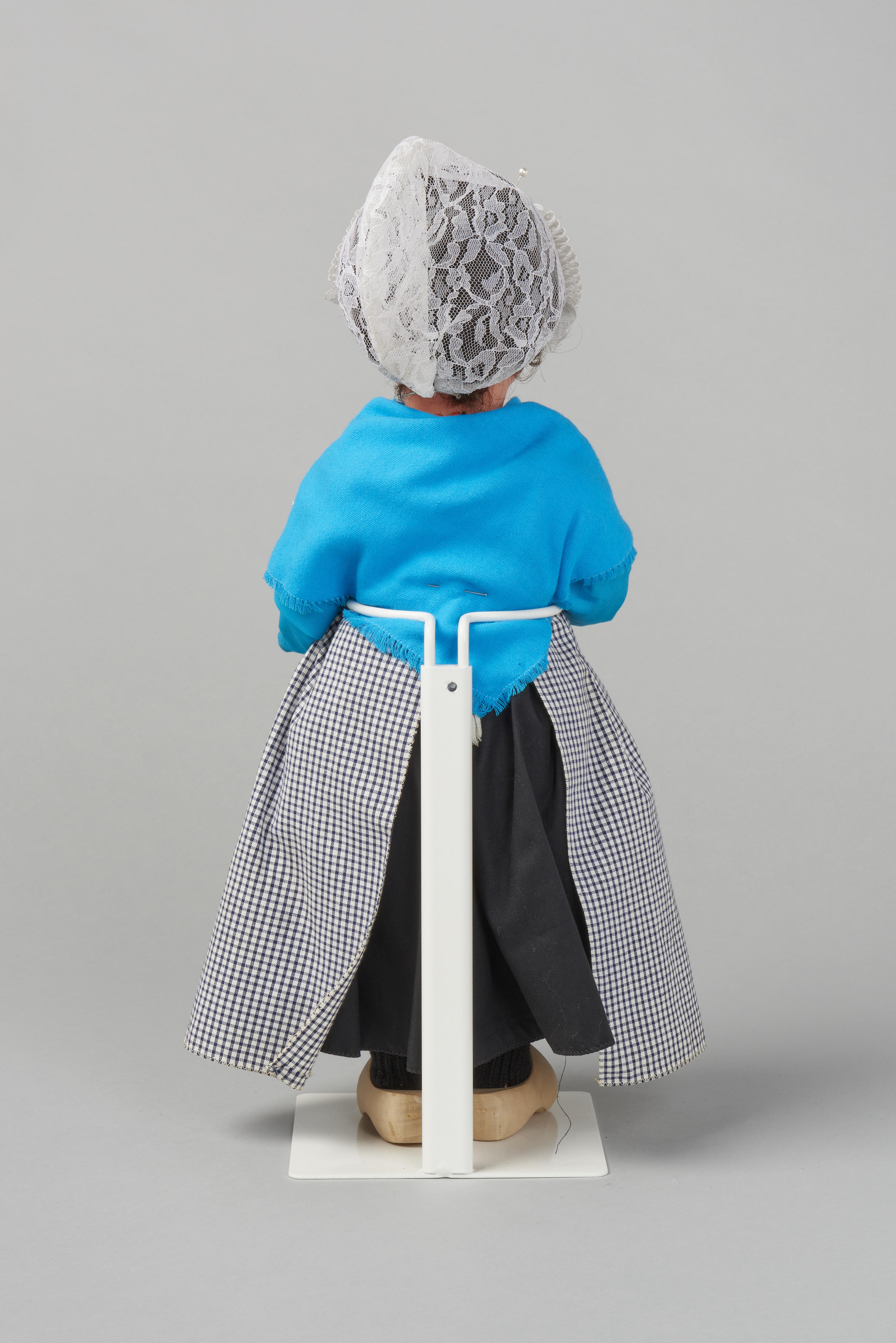 Pop, gekleed als een jonge vrouw uit Scheveningen in werkdracht.