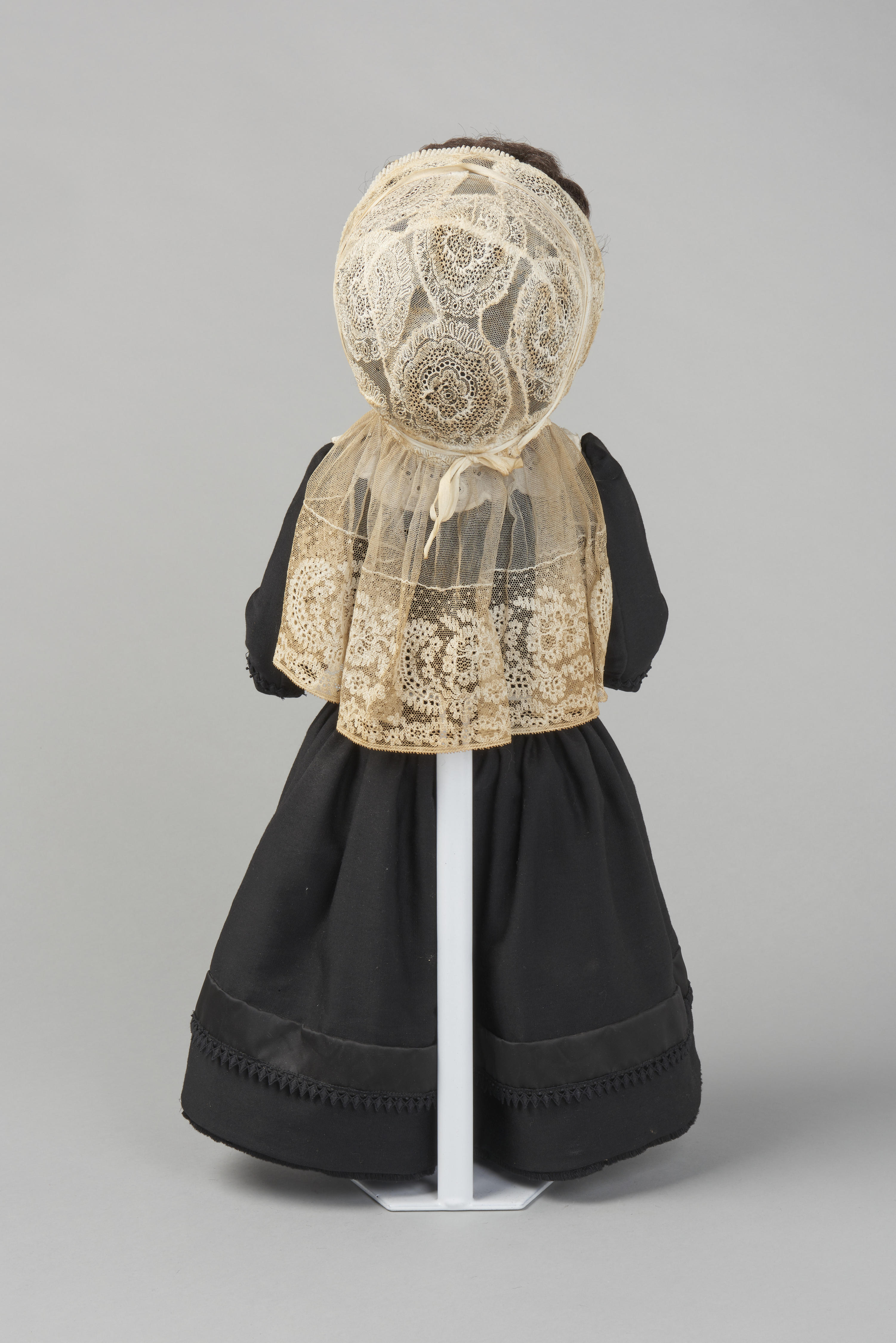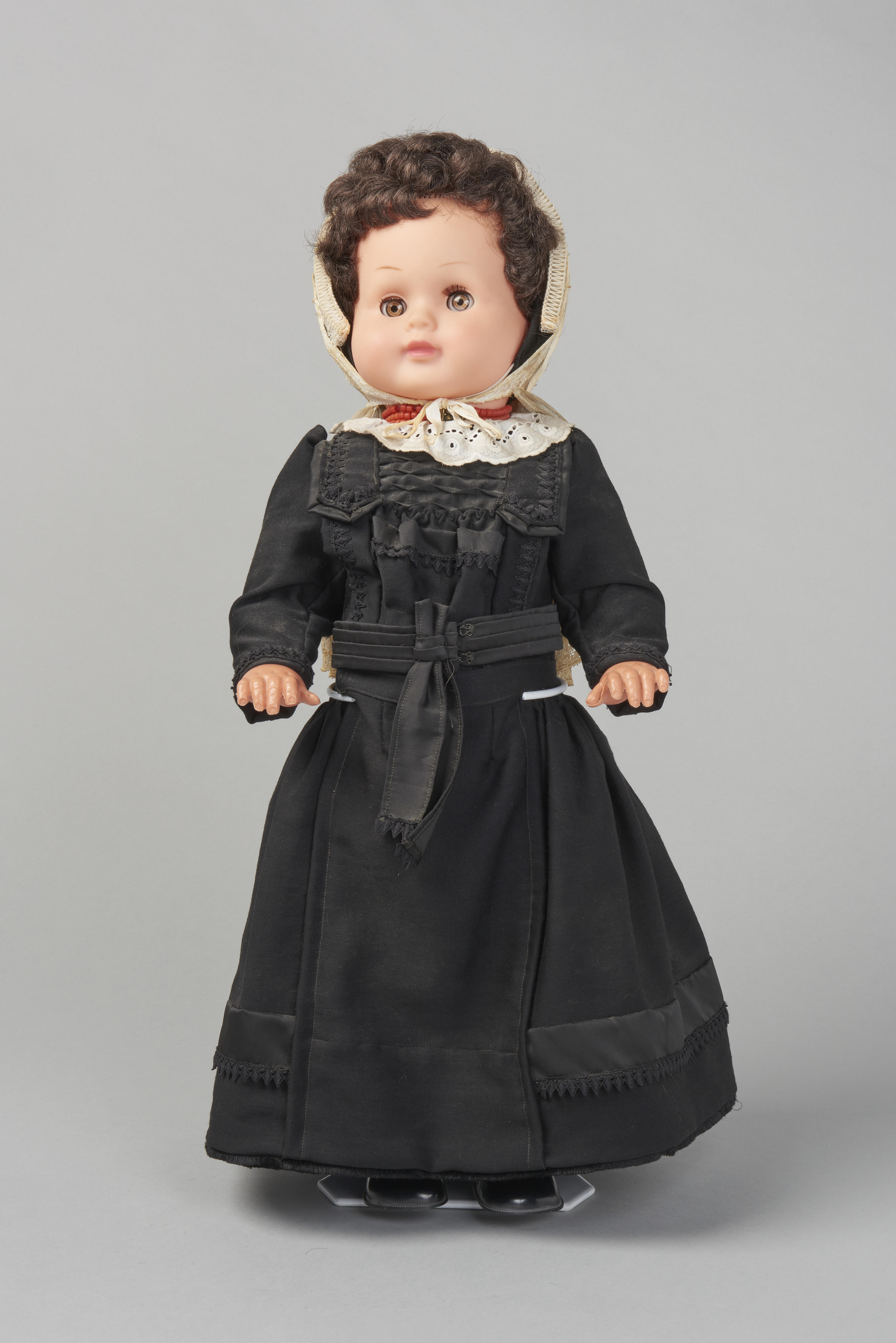 Pop, gekleed als een vrouw uit Barneveld in zondagse dracht.