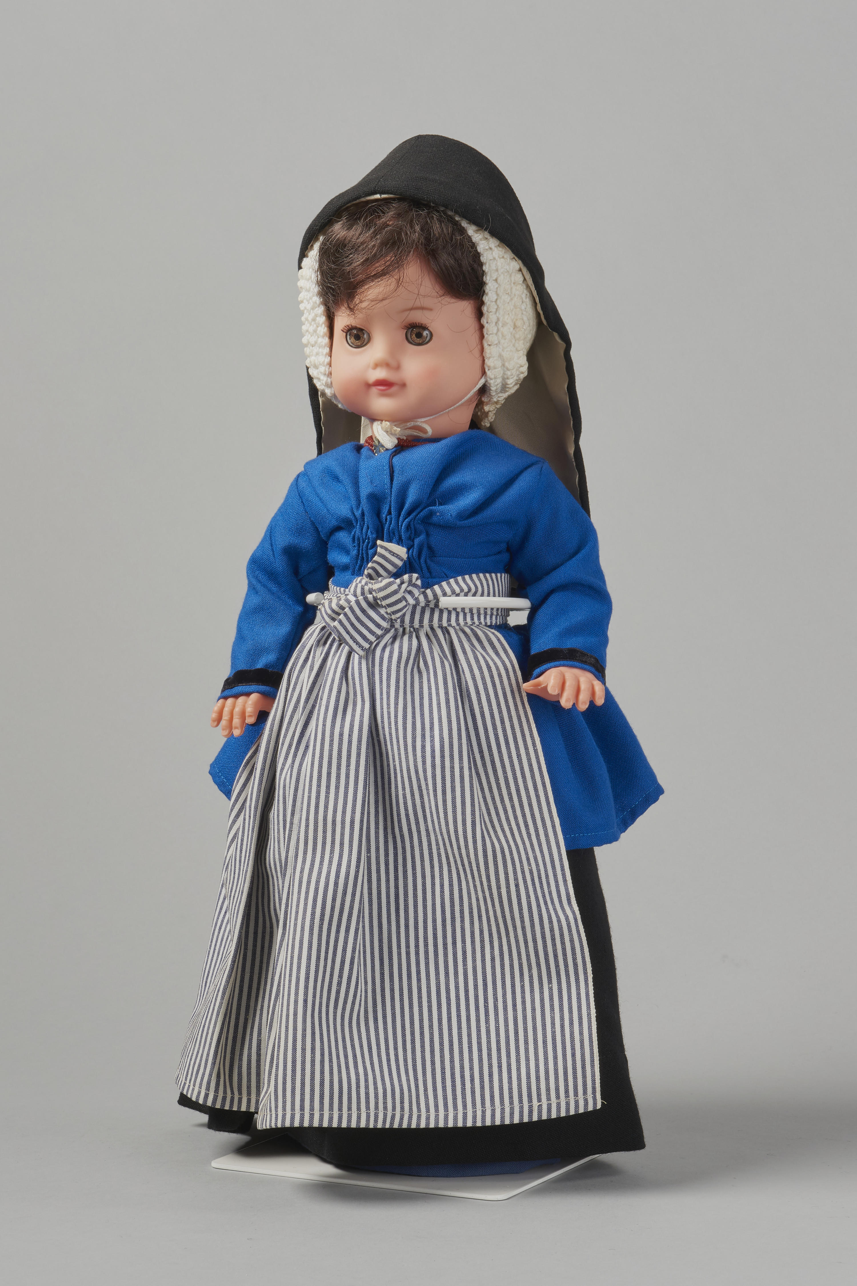 Miniatuurpop, gekleed zoals een vrouw van Terschelling. De pop draagt een kaper over haar muts.