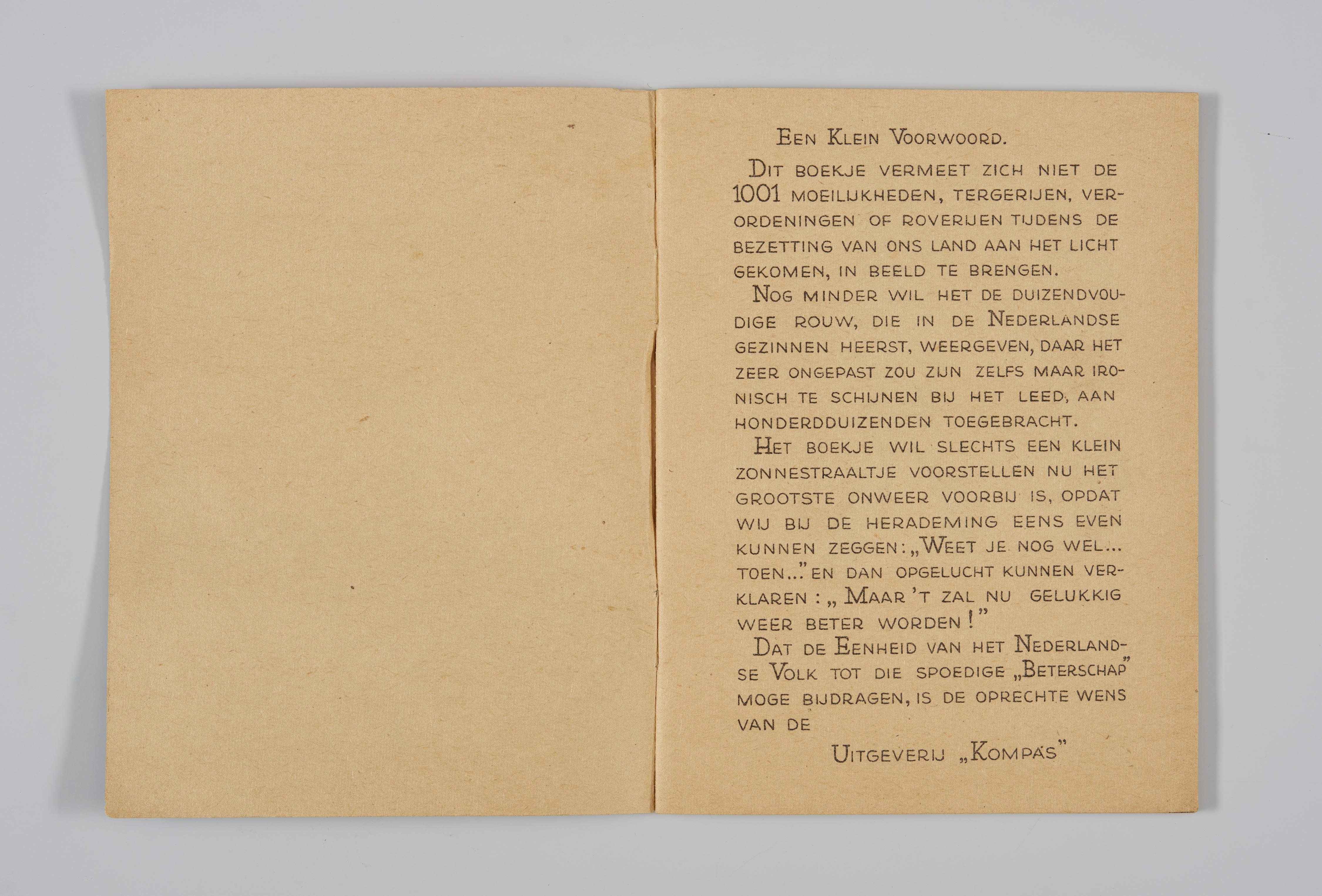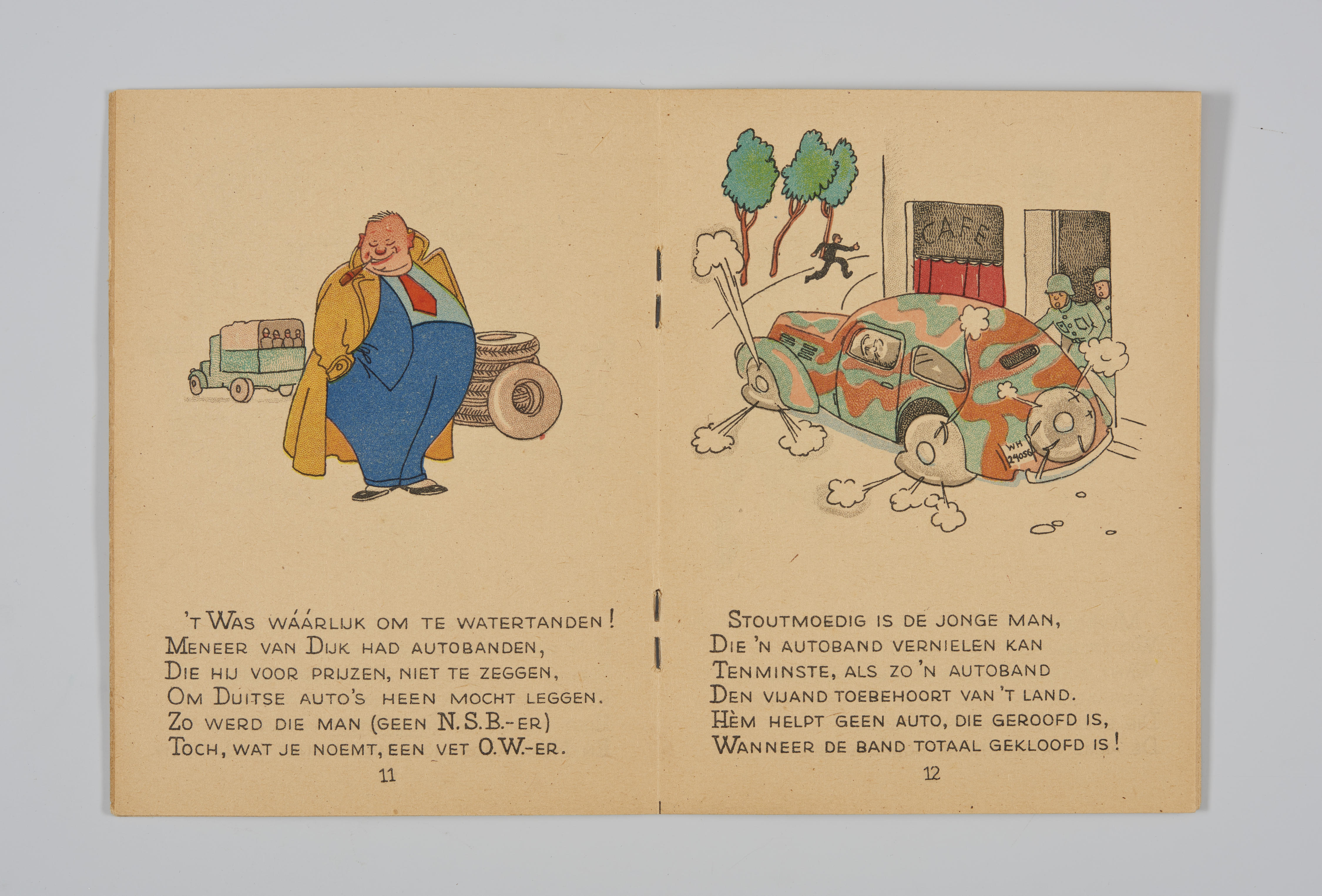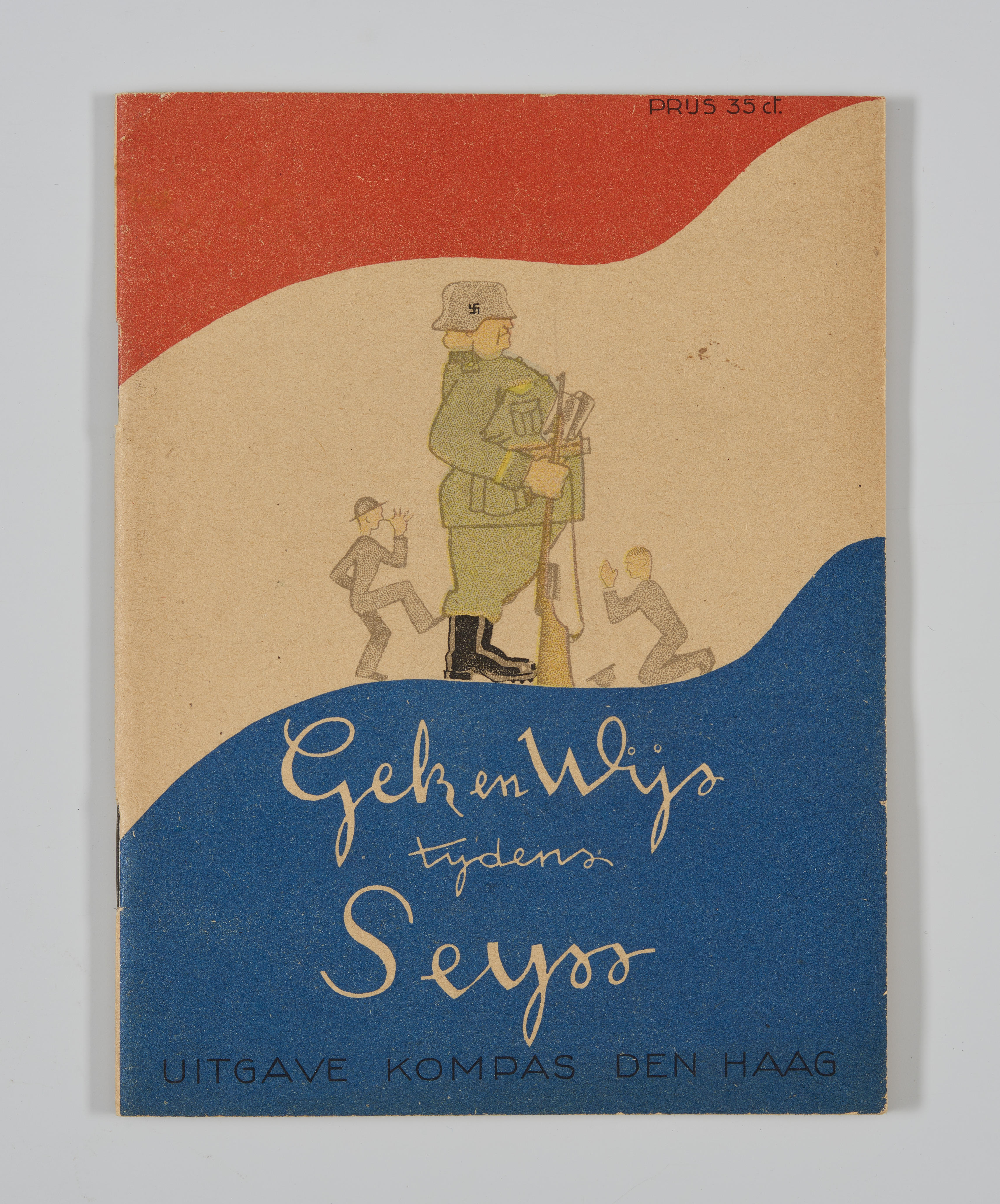 Boekje in de kleuren rood-wit-blauw met op de voorzijde een afbeelding van een Duitse soldaat die aan de ene kant door een jongen wordt geschopt en aan de andere kant tot genade wordt gesmeekt. In het boekje staan telkens twee corresponderende bladzijden van 'goed en fout' tijdens de bezetting van de Duitsers in beeld en ...