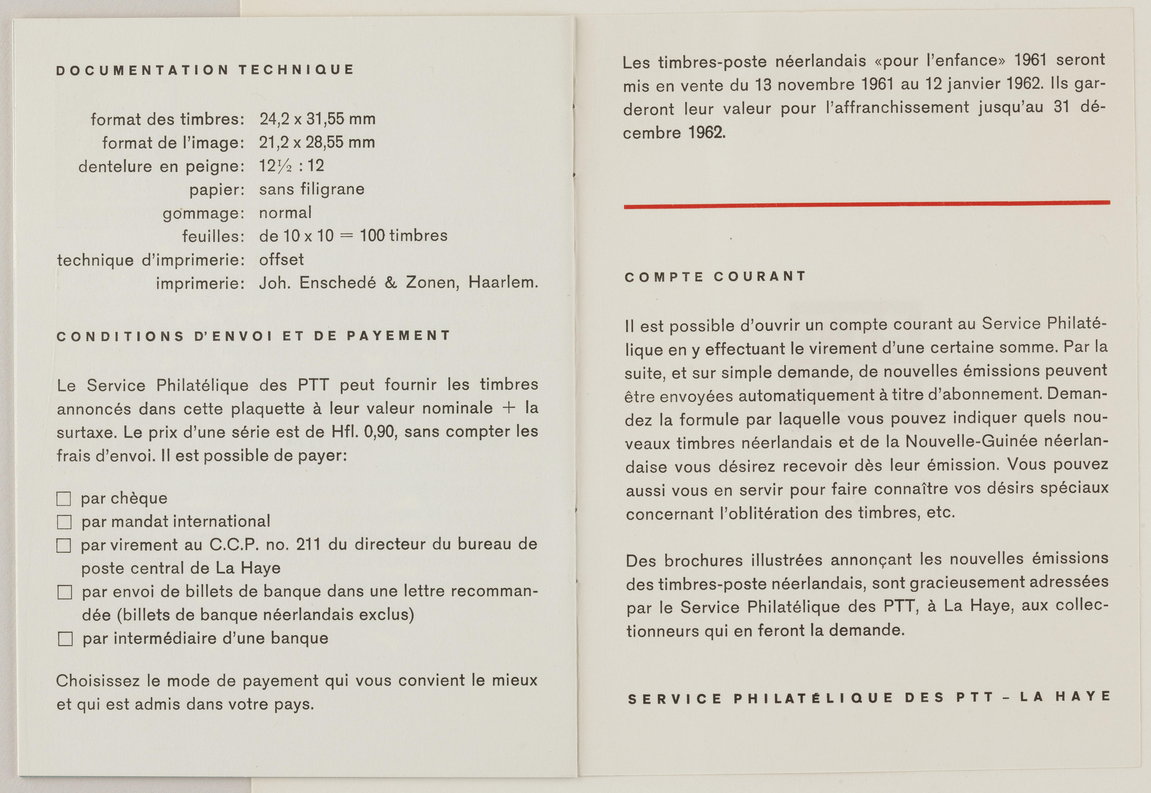 Boekje met uitleg in het Frans over kinderpostzegels, 1961