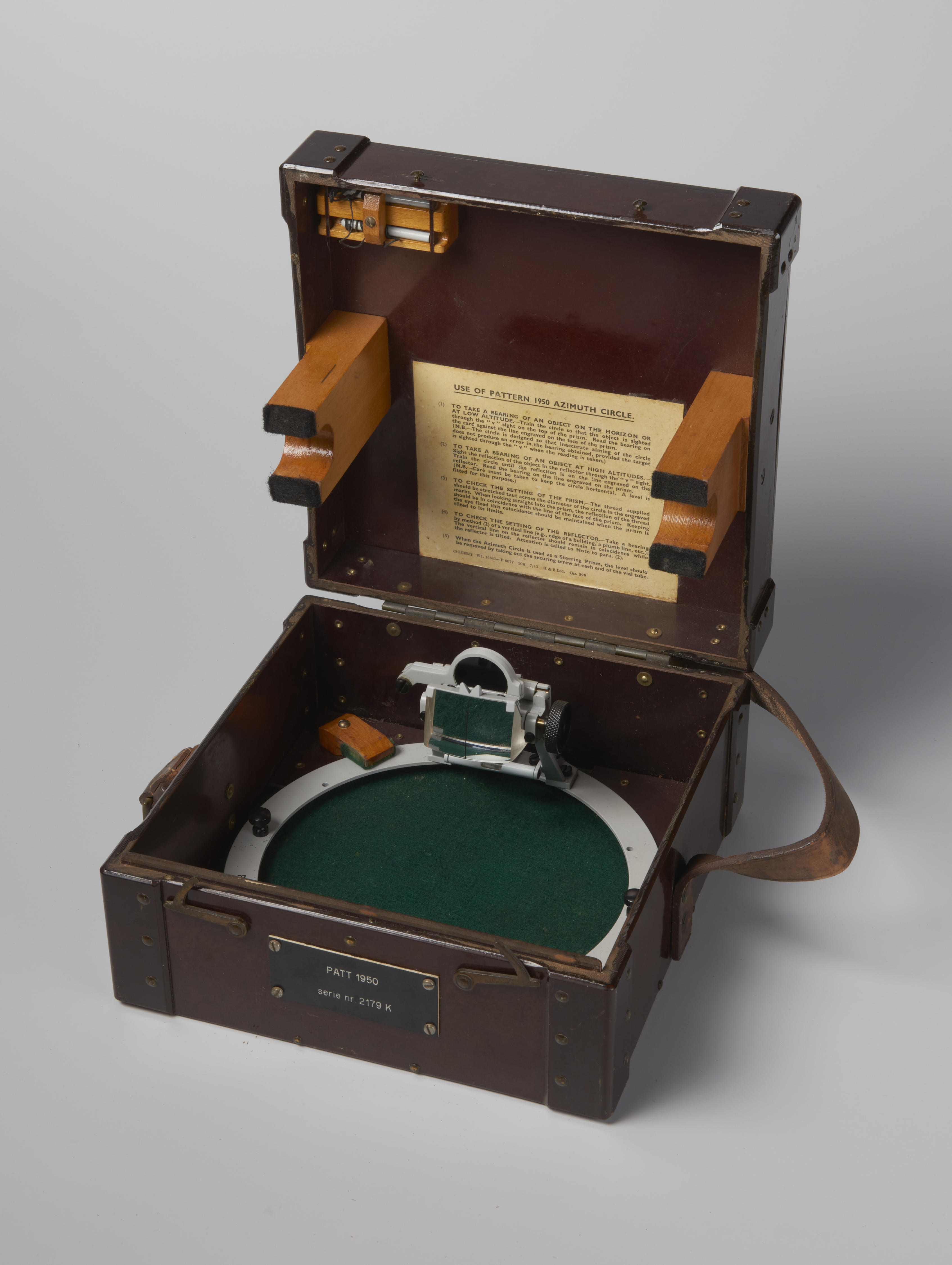 Azimutcirkel voor kompas met doos, Engeland, na 1950