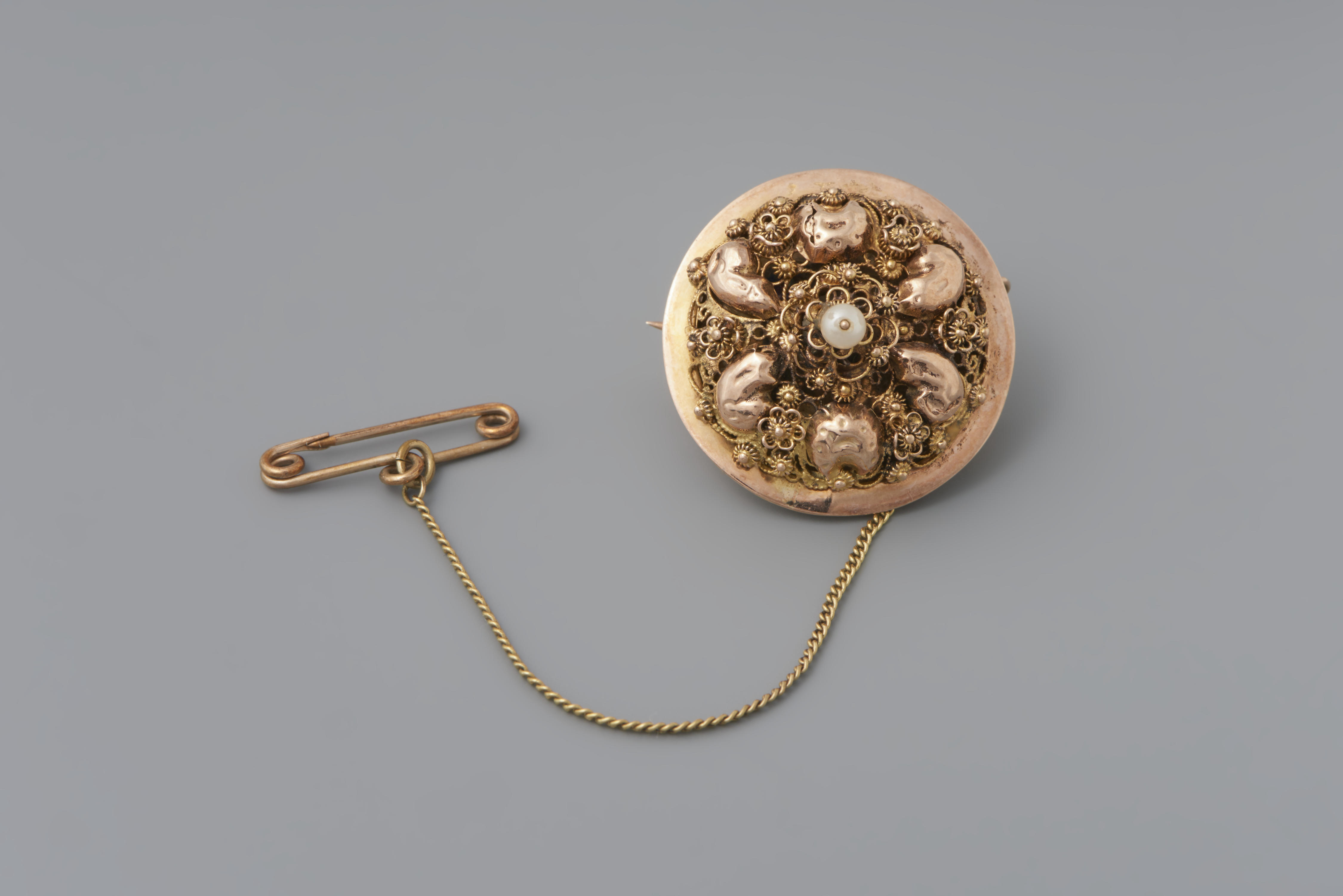 Tot broche vermaakte mutsspeld van de Zuid-Hollandse eilanden. Na het overlijden van Lena van der Blom-Lugtenburg (1859-1928) erfden twee dochters elk een gouden mutsspeld met imitatieparel. Beiden lieten daarvan door juwelier Izak Wessels een broche maken. Dochter Anna Hermina bleef deze broche dragen tot haar dood in 1983.