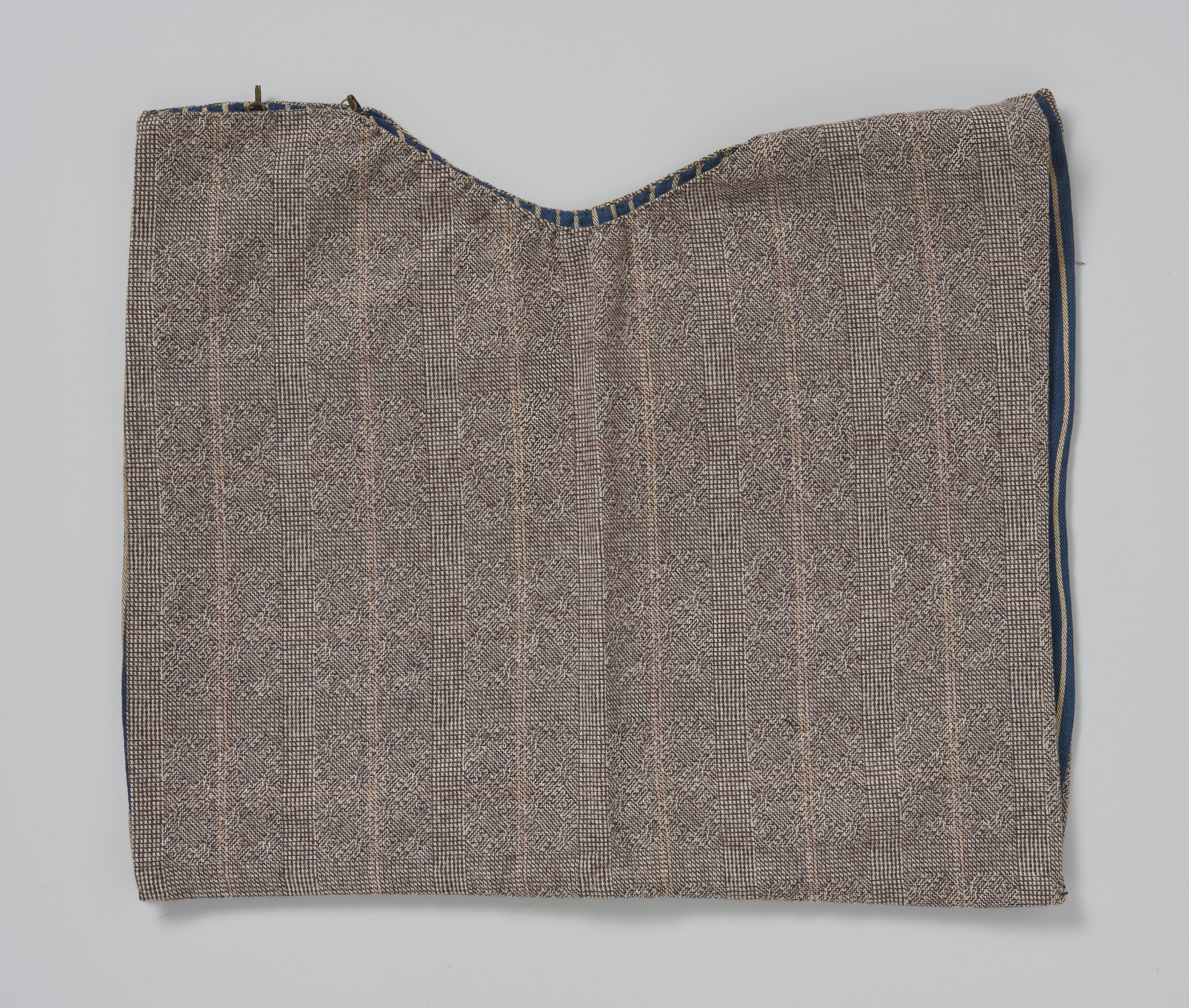 Wollen beuk met ingeweven dessin, gevoerd met een blauw-wit gestreepte keperkatoen. De beuk behoorde waarschijnlijk tot de doordeweekse dracht op Zuid-Beveland. Bij verwerving door het Nederlands Openluchtmuseum in 1960 werd genoteerd dat deze beuk gedragen werd met een doek van zogenoemd broekedoekengoed.