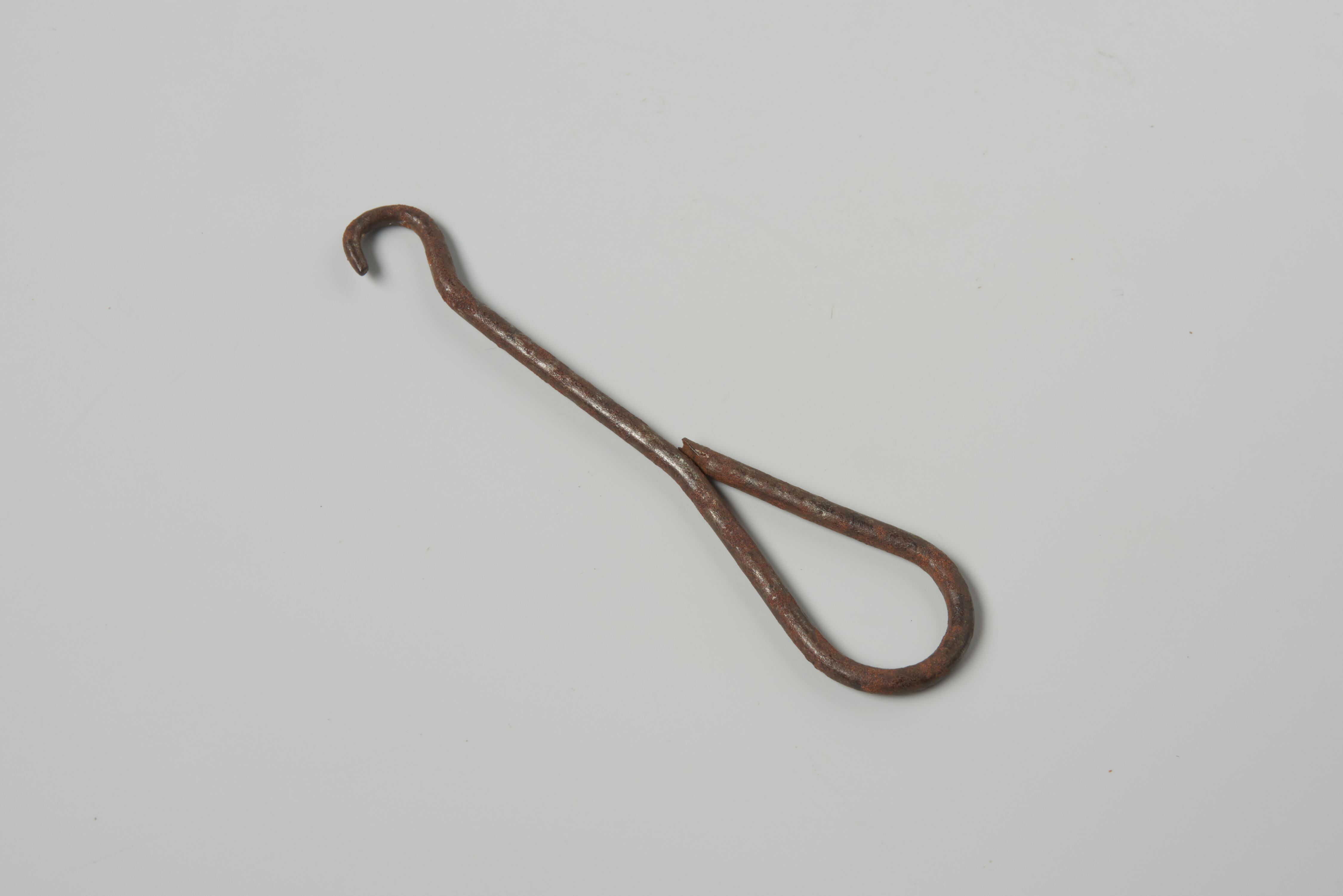 IJzeren knopenhaakje. Met behulp van een knopenhaakje kan een knoop van een schoen of handschoen eenvoudig door het knoopsgat gehaald worden. Je steekt de haak door het knoopsgat en haakt deze vervolgens om de knoop, waarna de knoop door het gat getrokken kan worden.