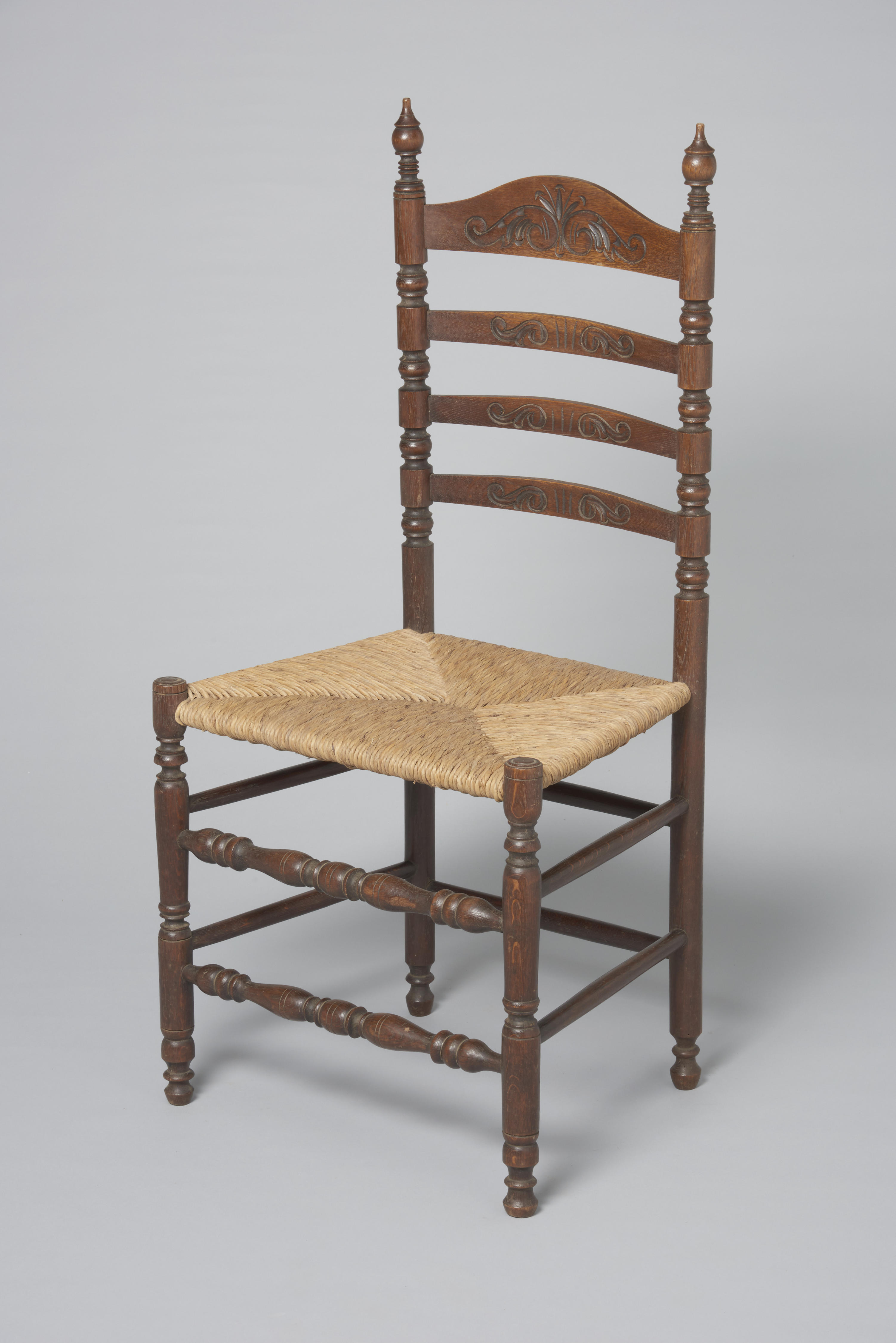 Bruin gebeitste eikenhouten knopstoel.