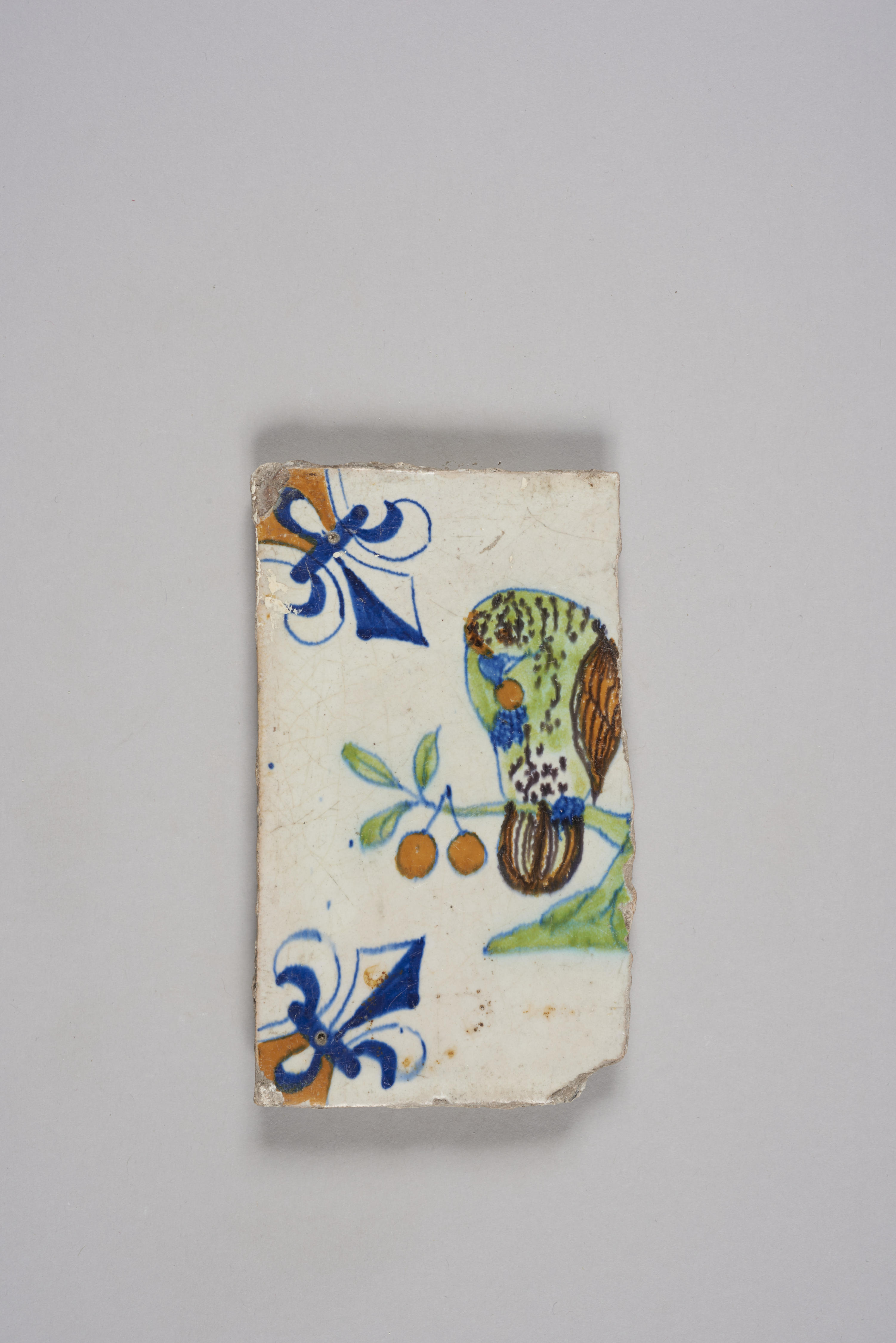 Wandtegel met afbeelding vogel met bes, 1600–1700