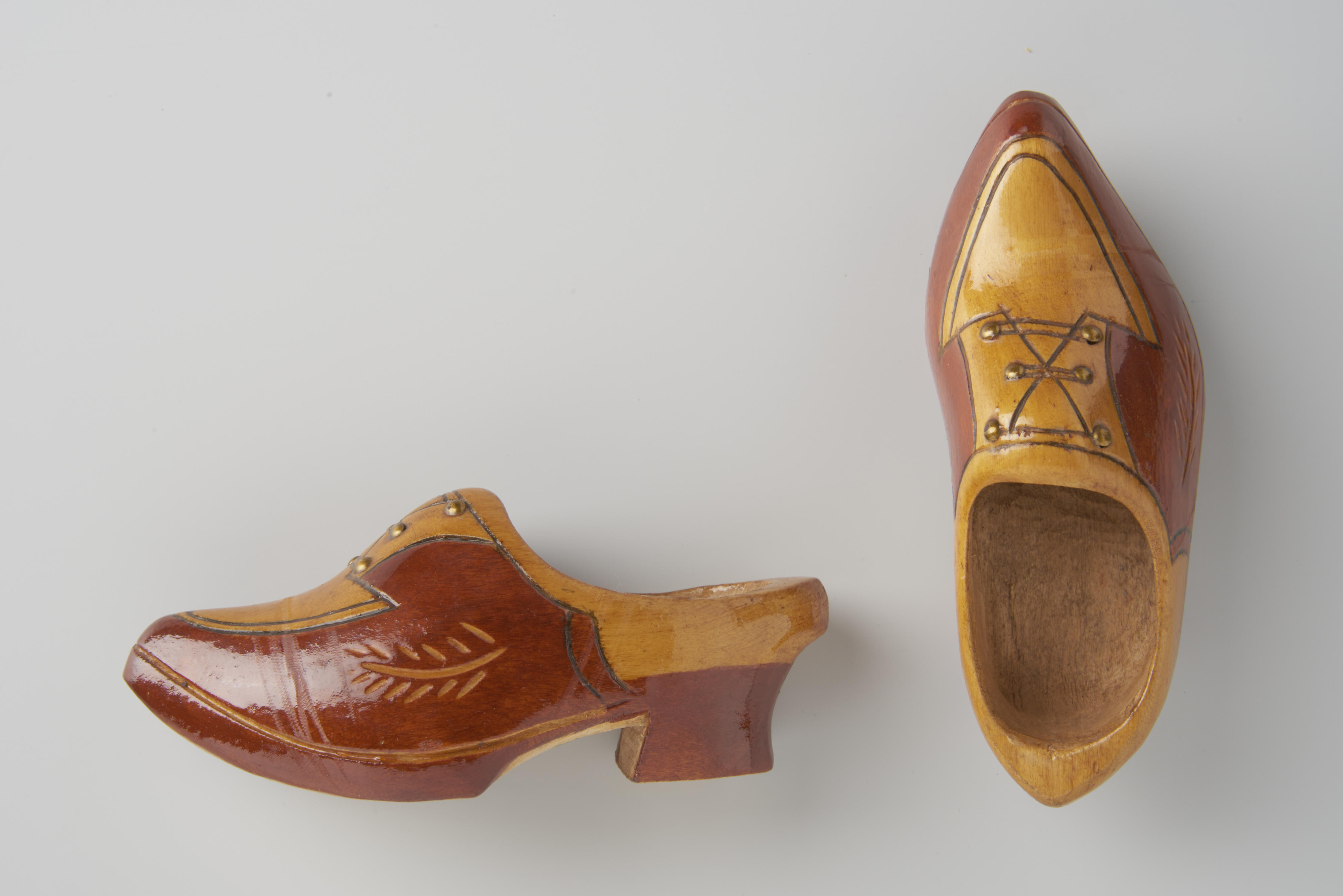 Paar beschilderde miniatuurklompen.