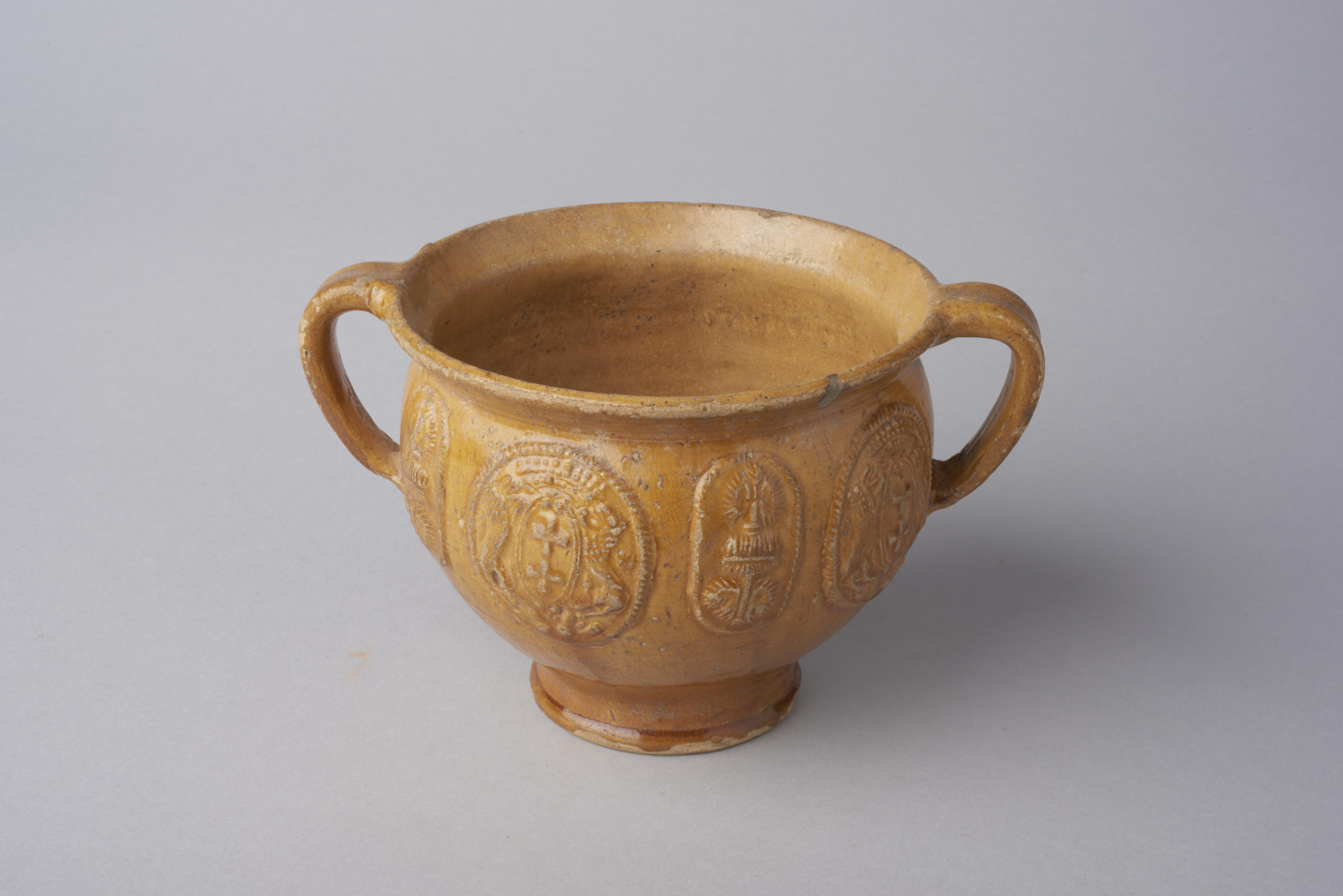 Papkom met viermaal een voorstelling van het wapen van Gdansk en viermaal een ovaal met een adelaar boven een boom. Het voorwerp is afkomstig uit particulier bezit op Ameland en is door zeevarenden uit het Oostzeegebied meegenomen.