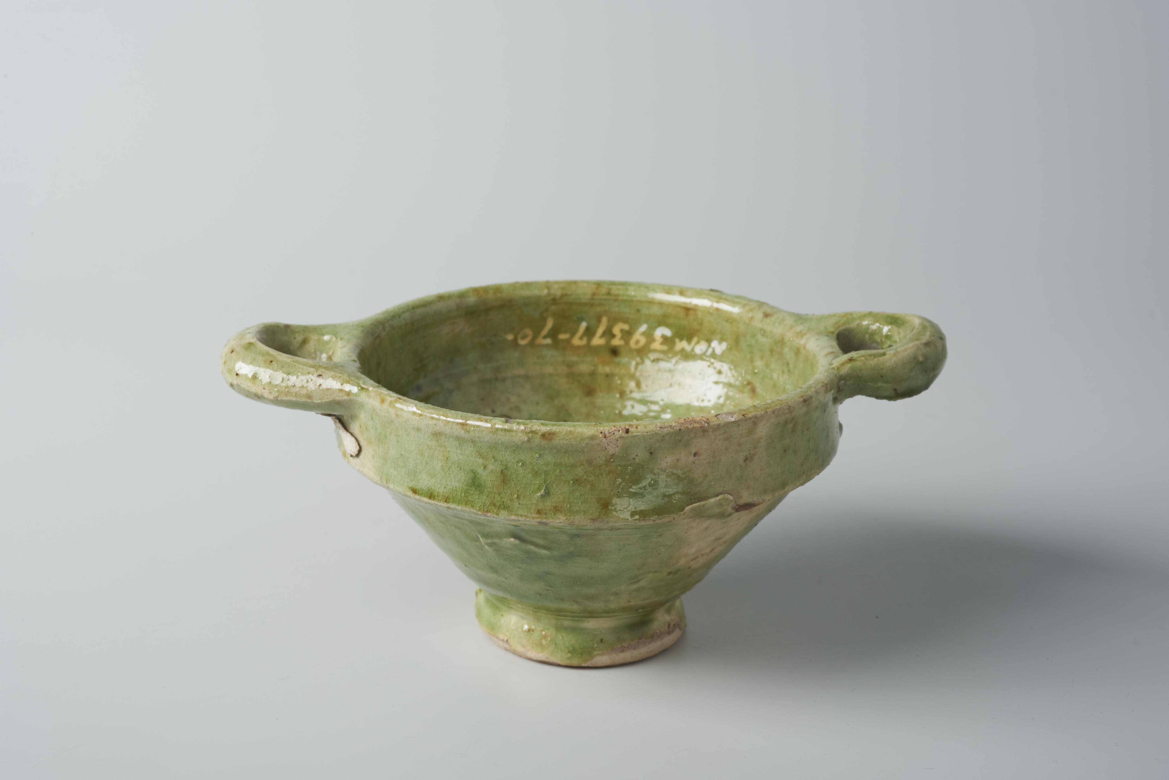 Groen geglazuurde speelgoedkom van Goedewaagen. Deze kom is onderdeel van een kinderservies dat wordt aangeboden in de Goedewaagen Star catalogus uit 1910. De vormgeving gaat terug op algemene archaïsche vormen en eeuwenoude modellen van Nederlands gebruiksaardewerk. Het servies is Gouds-groen geglazuurd.