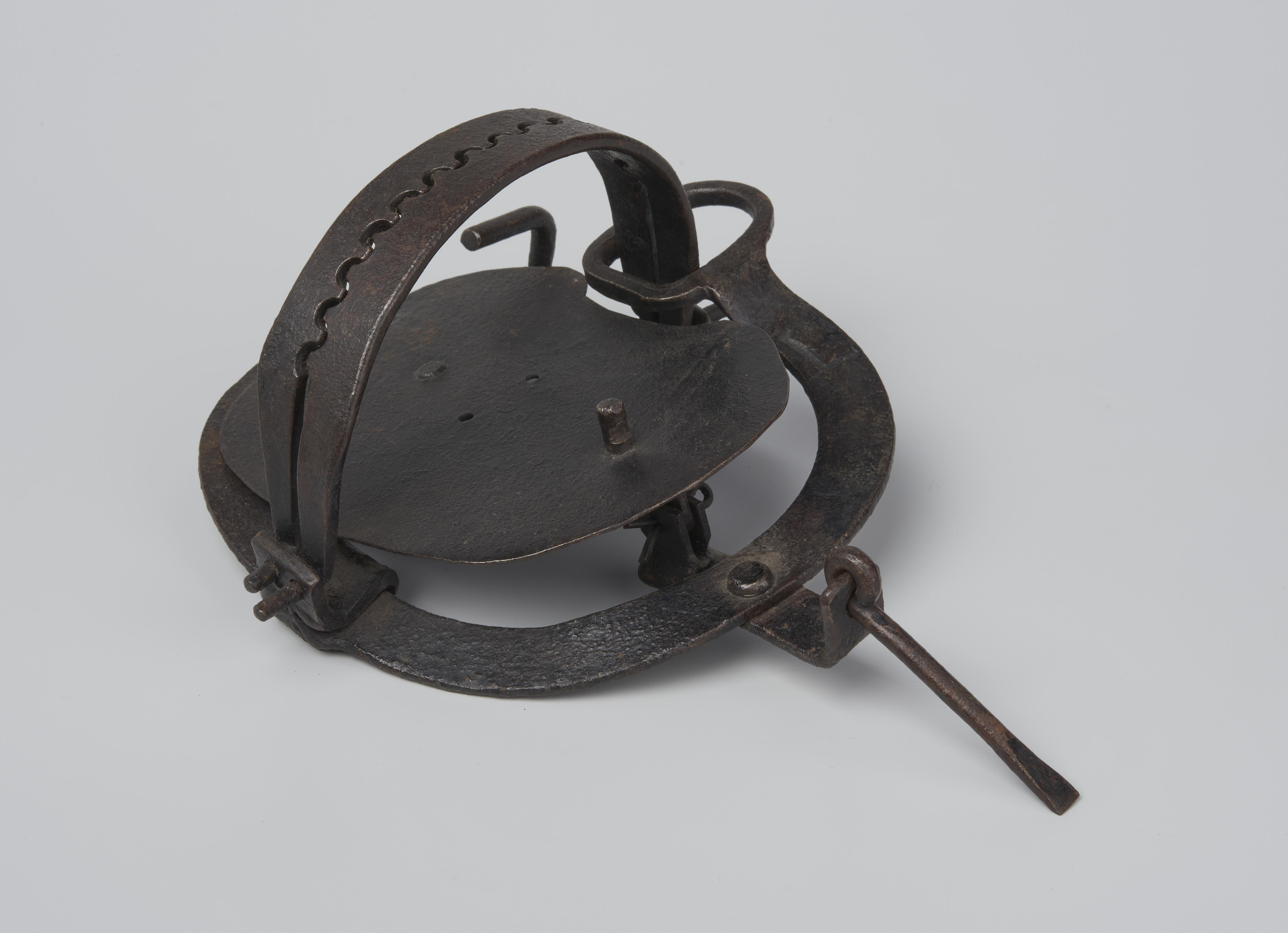 IJzeren klem voor het vangen van roofdieren zoals bunzings en marters, maar ook geschikt voor het vangen van konijnen. De klem is afkomstig uit de omgeving van Breda.