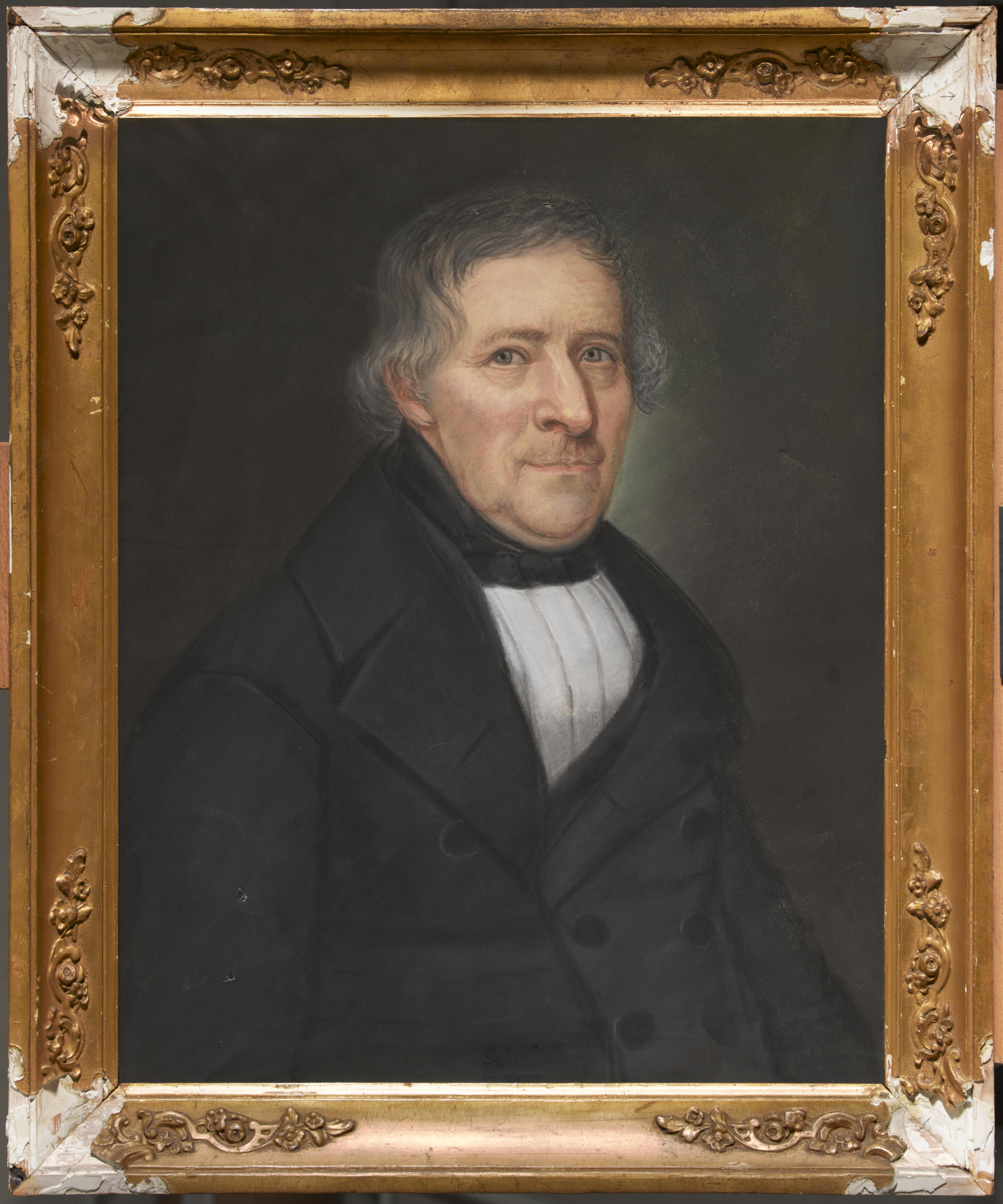 Portret van Klaas Brat (1787-1851), echtgenoot van Geertje Jongh Visser. Hij was stijfselmaker en mosterdfabrikant. Beide bedrijven had hij van zijn vader geërfd. Zijn portret laat zien hoe een man in de rijke kringen in de Zaanstreek rond 1850 gekleed ging. Klaas draagt een zwarte geklede das, geheel volgens de stadsmode van die tijd. Zijn ...