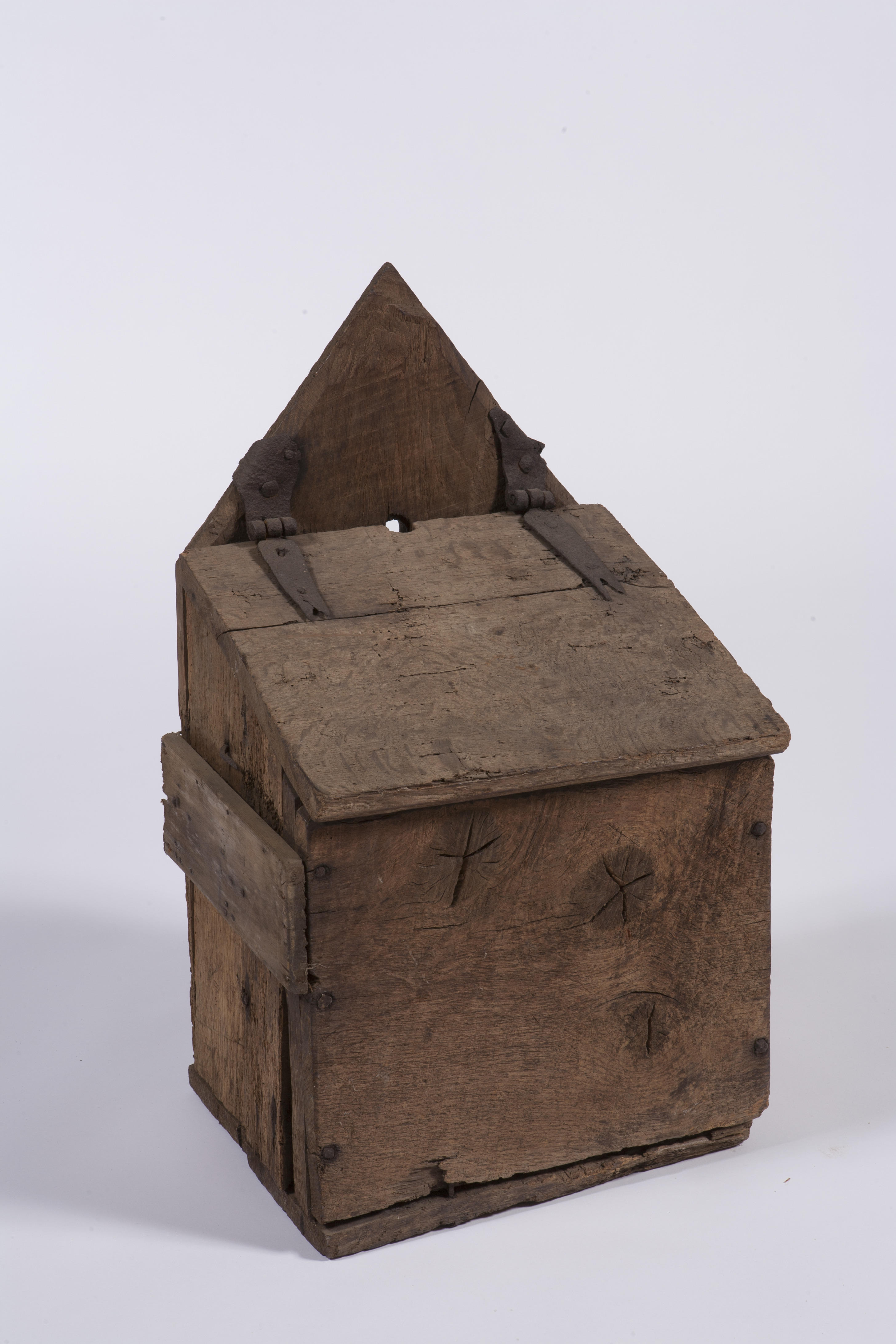 Eikenhouten tuigkast, gebruikt voor het opbergen van riempjes en bitten. De kast is afkomstig van Erve Hazelbekke in Nutter (Overijssel).