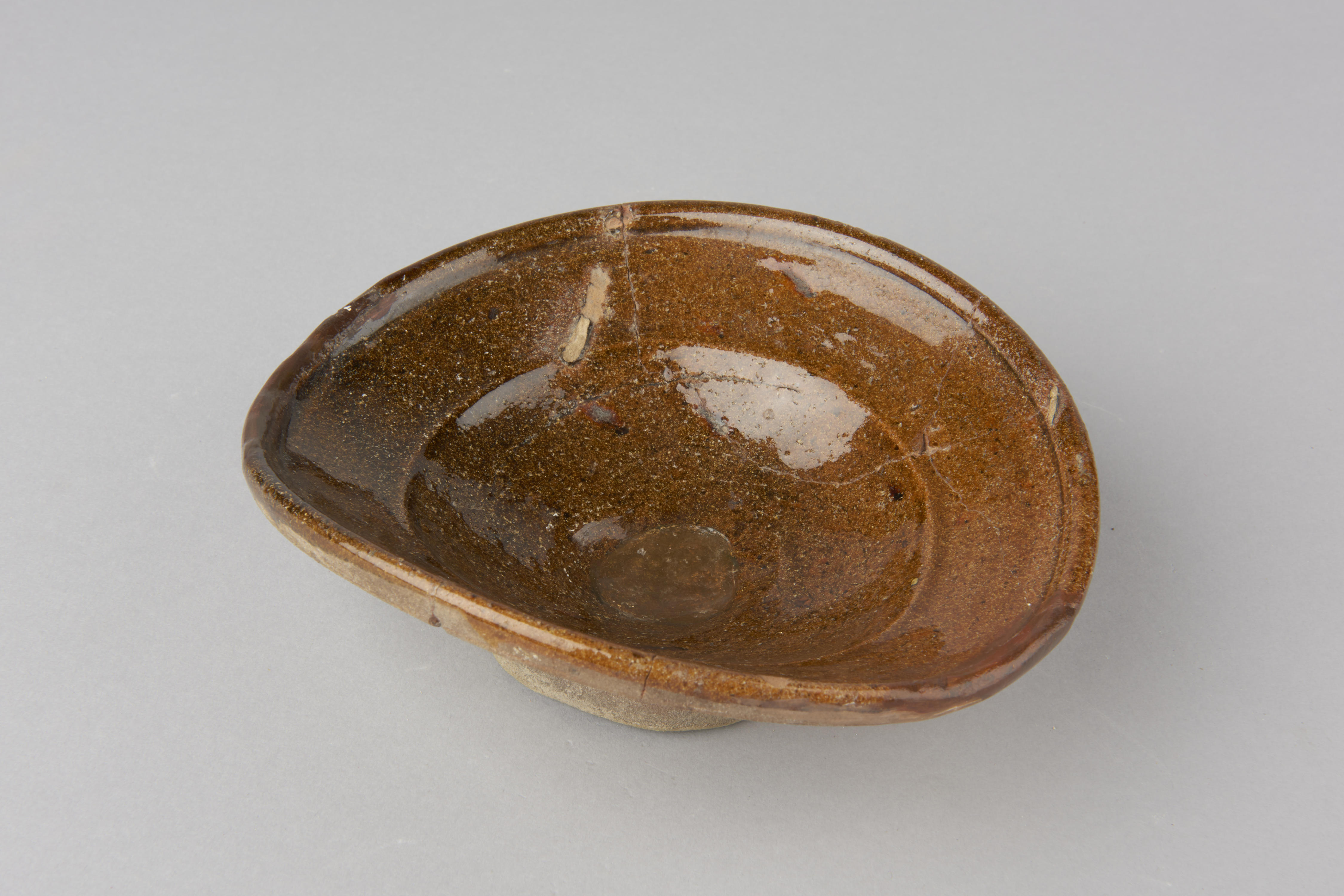 Bord, bodemvondst in Friesland. Het bordje is vervormd door een te hoge temperatuur in de oven.