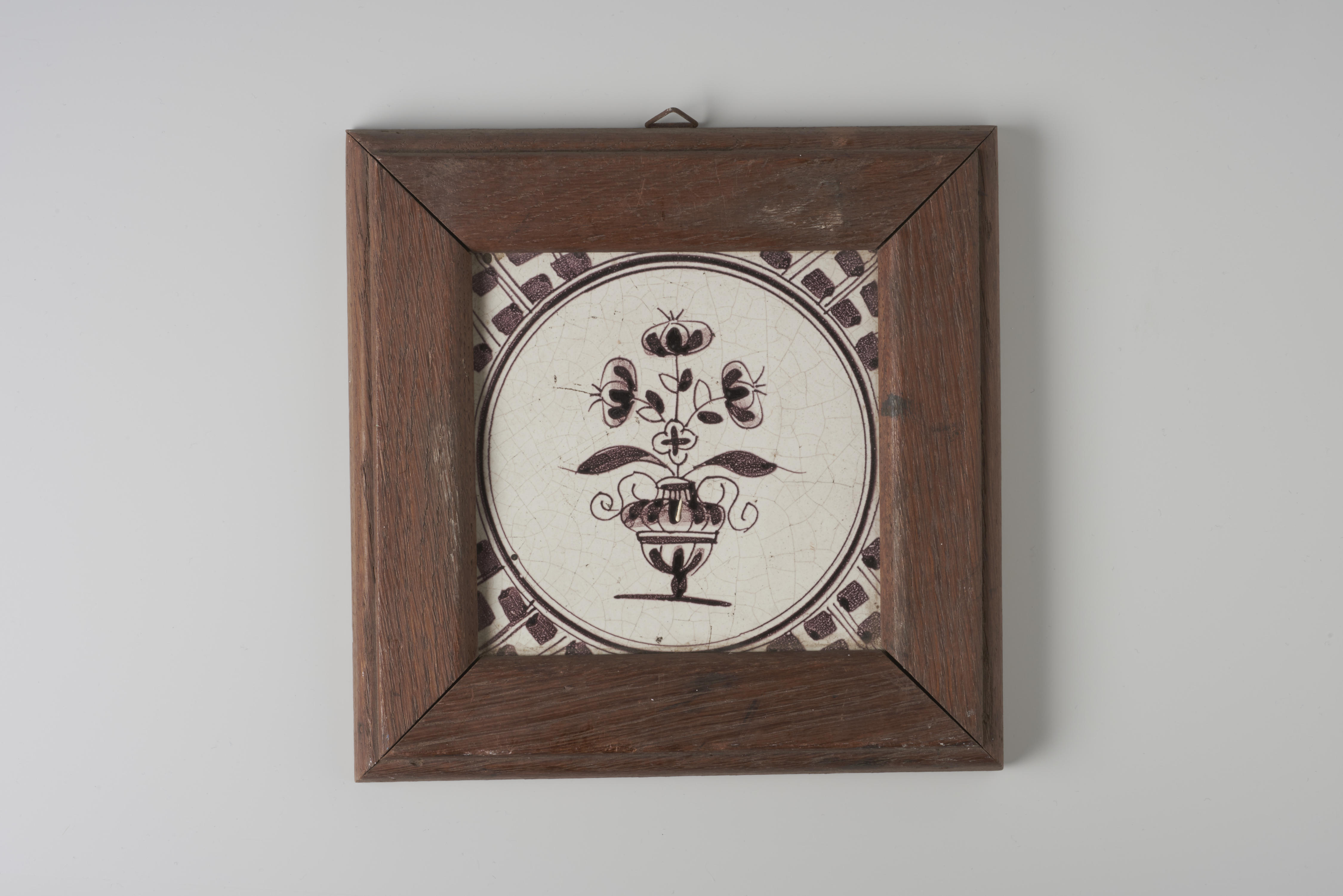 Wandtegel met afbeelding bloempot in cirkel, 1800