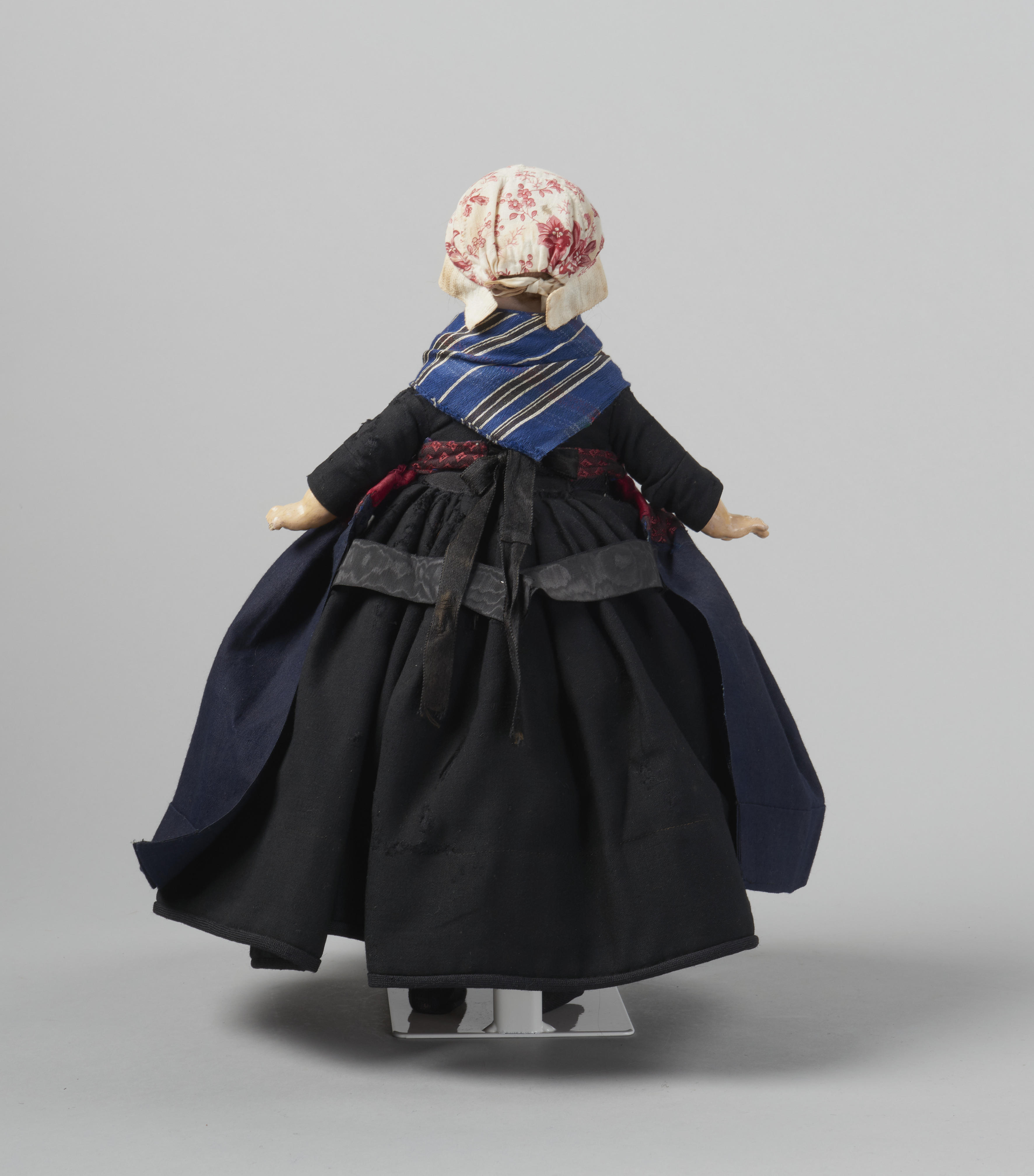 Miniatuurpop, gekleed als een vrouw uit Nunspeet in de doekendracht, de 'oude dracht' van het einde van de negentiende eeuw.