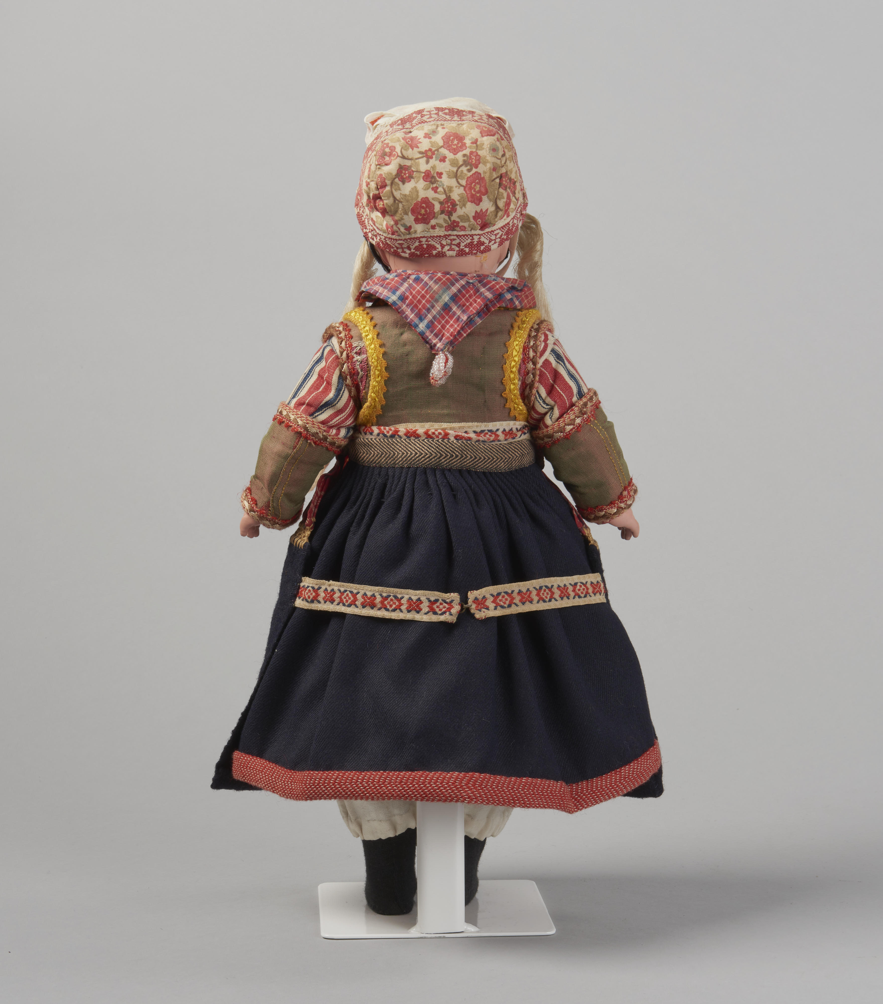 Miniatuurpop, gekleed als Marker meisje met Pinksteren. Met Pinksteren worden op Marken de mooiste, vaak antieke, kledingstukken gedragen.