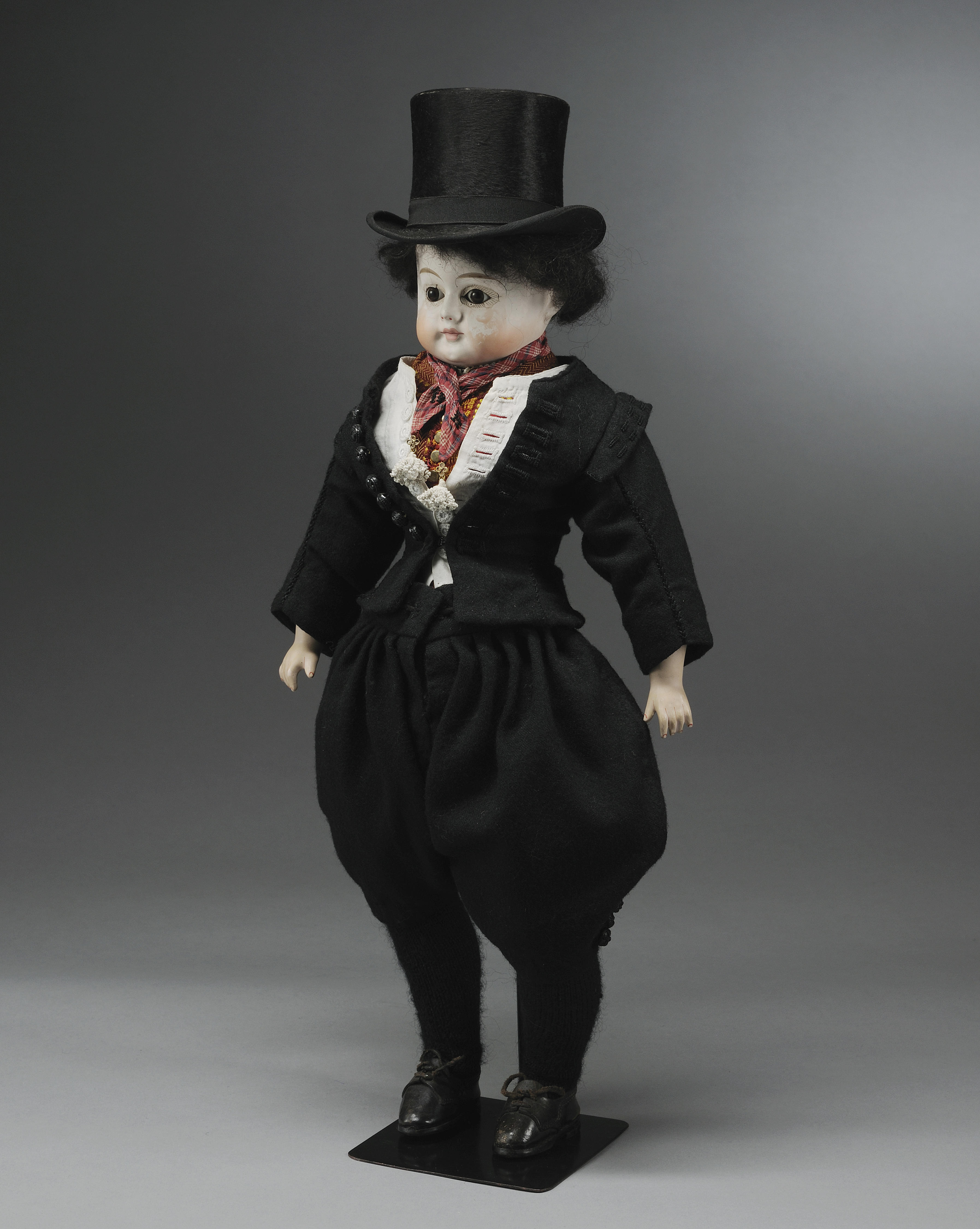 Deze miniatuurpop is gekleed zoals de bruidegom van de witte bruid er traditioneel op Marken uitzag.