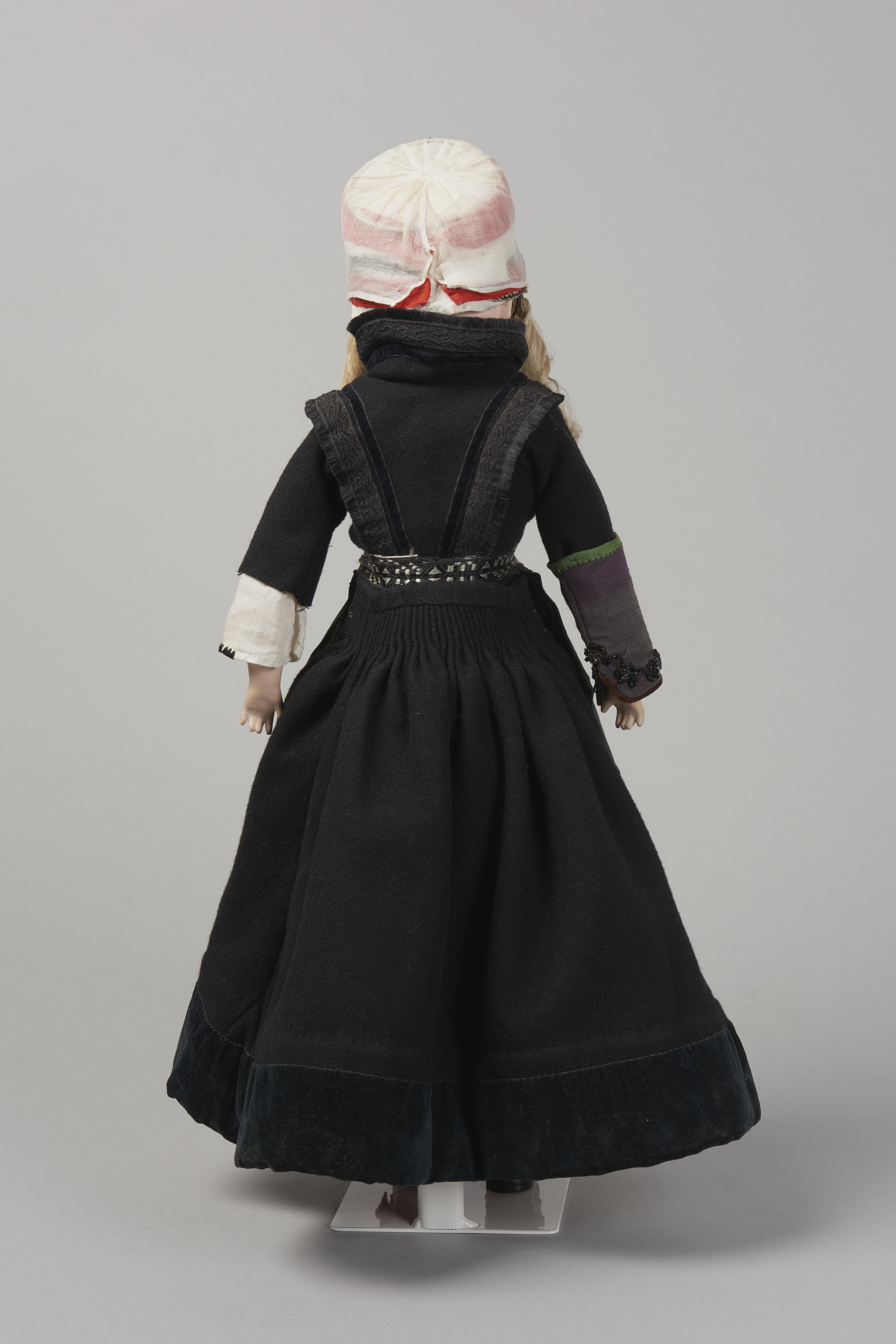 Miniatuurpop, gekleed als 'zwarte bruid' op Marken.