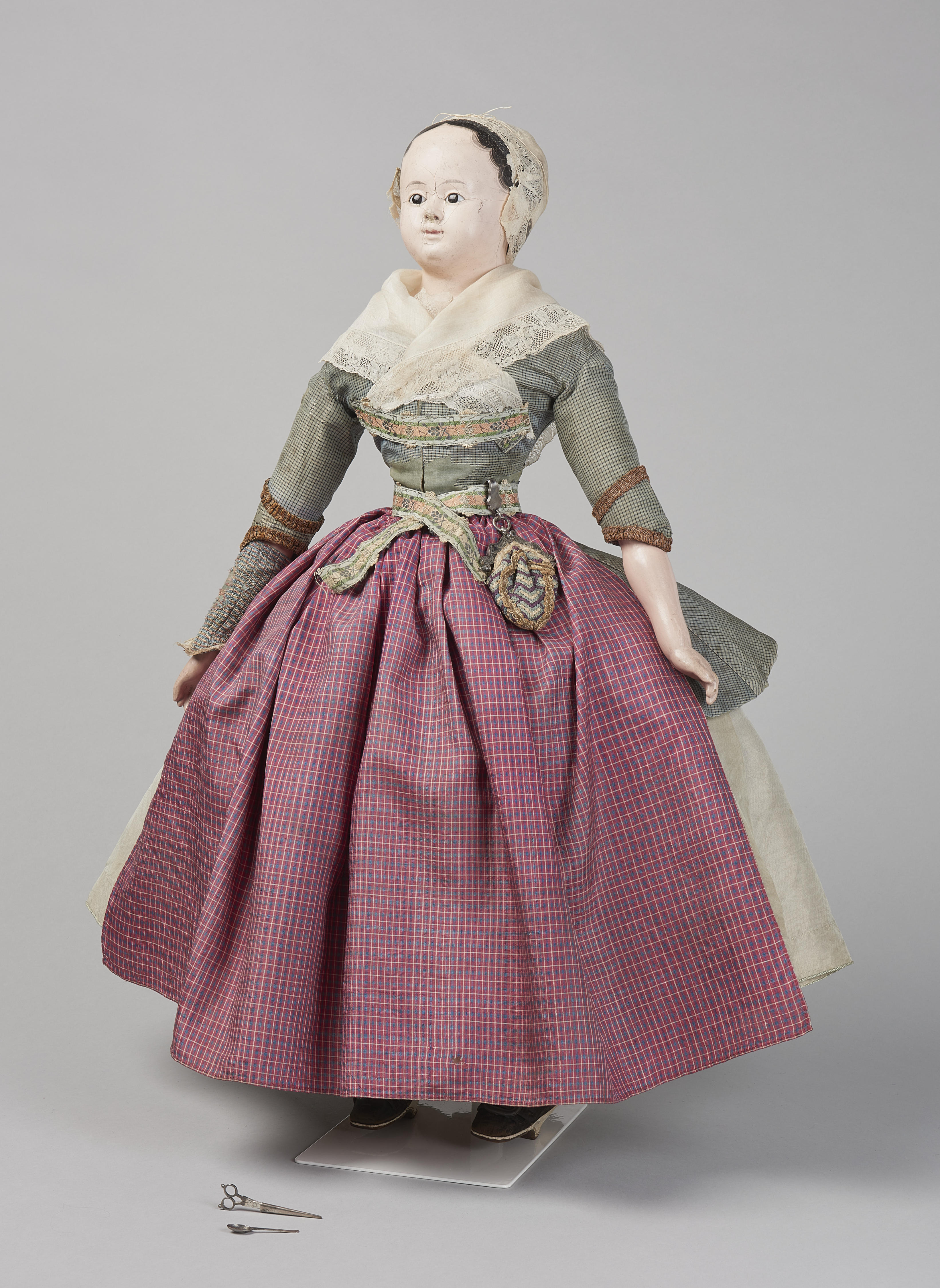 Miniatuurpop, gekleed zoals een vrouw uit Zaandam aan het einde van de achttiende eeuw.