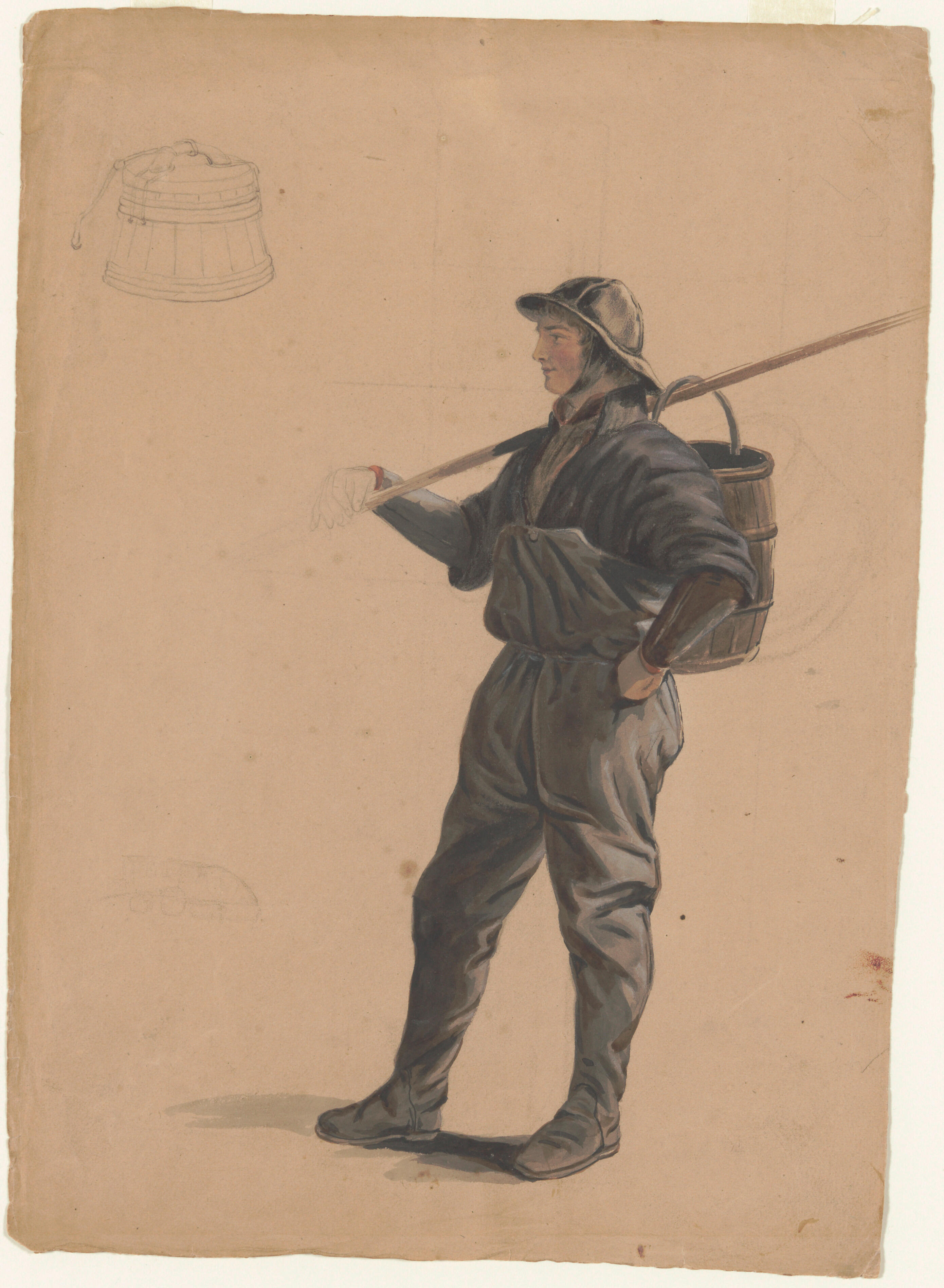 Voorstudie gemaakt voor plaat III van: Nederlandsche kleederdragten, naar de natuur geteekend = costumes des Pays-Bas, dessinés d'après nature / door Valentijn Bing en [Jan] Braet von Ueberfeldt. - Amsterdam : [s.n.], 1857.
