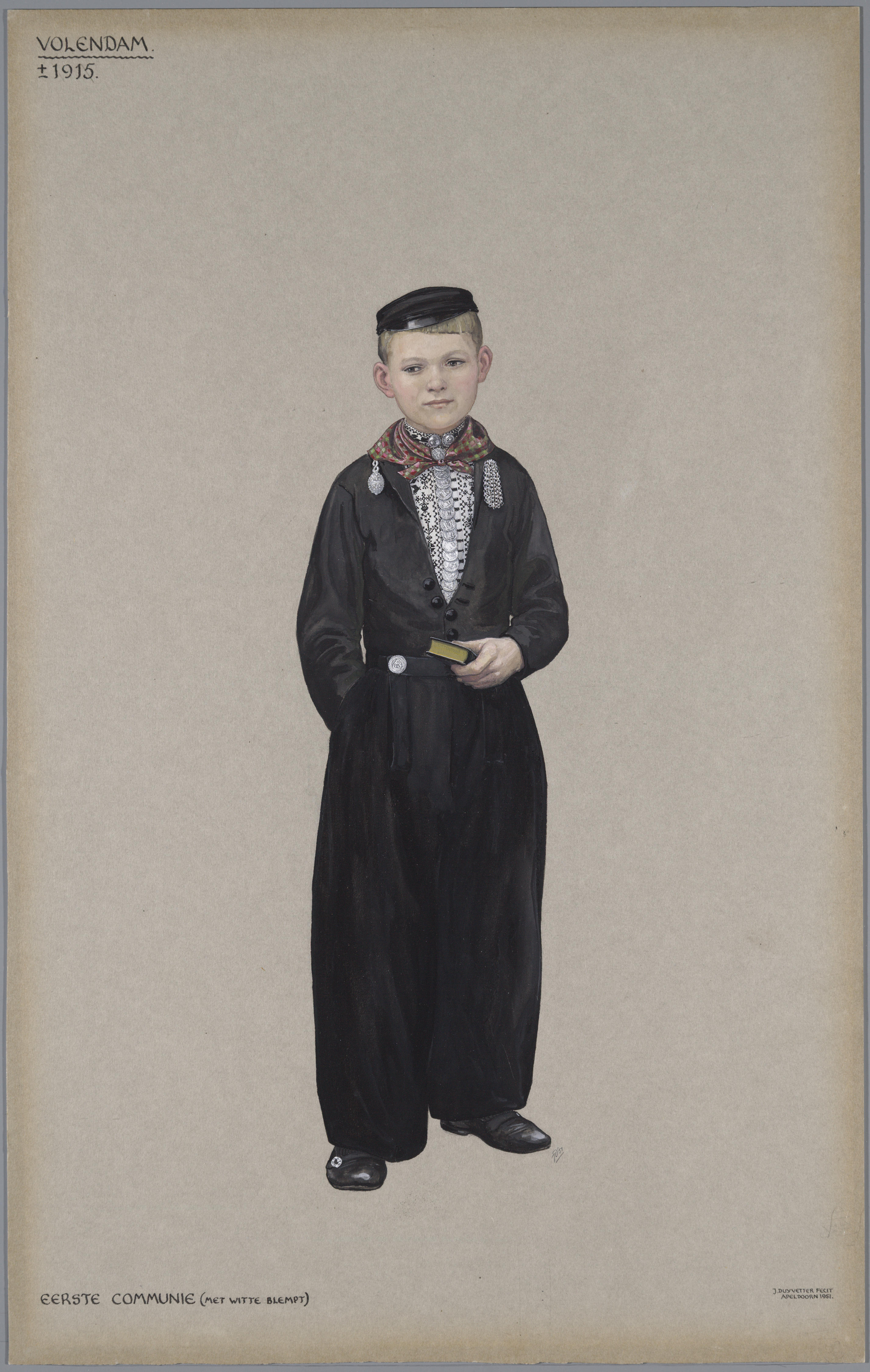 Jongen uit Volendam rond 1915, gekleed voor zijn Eerste Communie.
