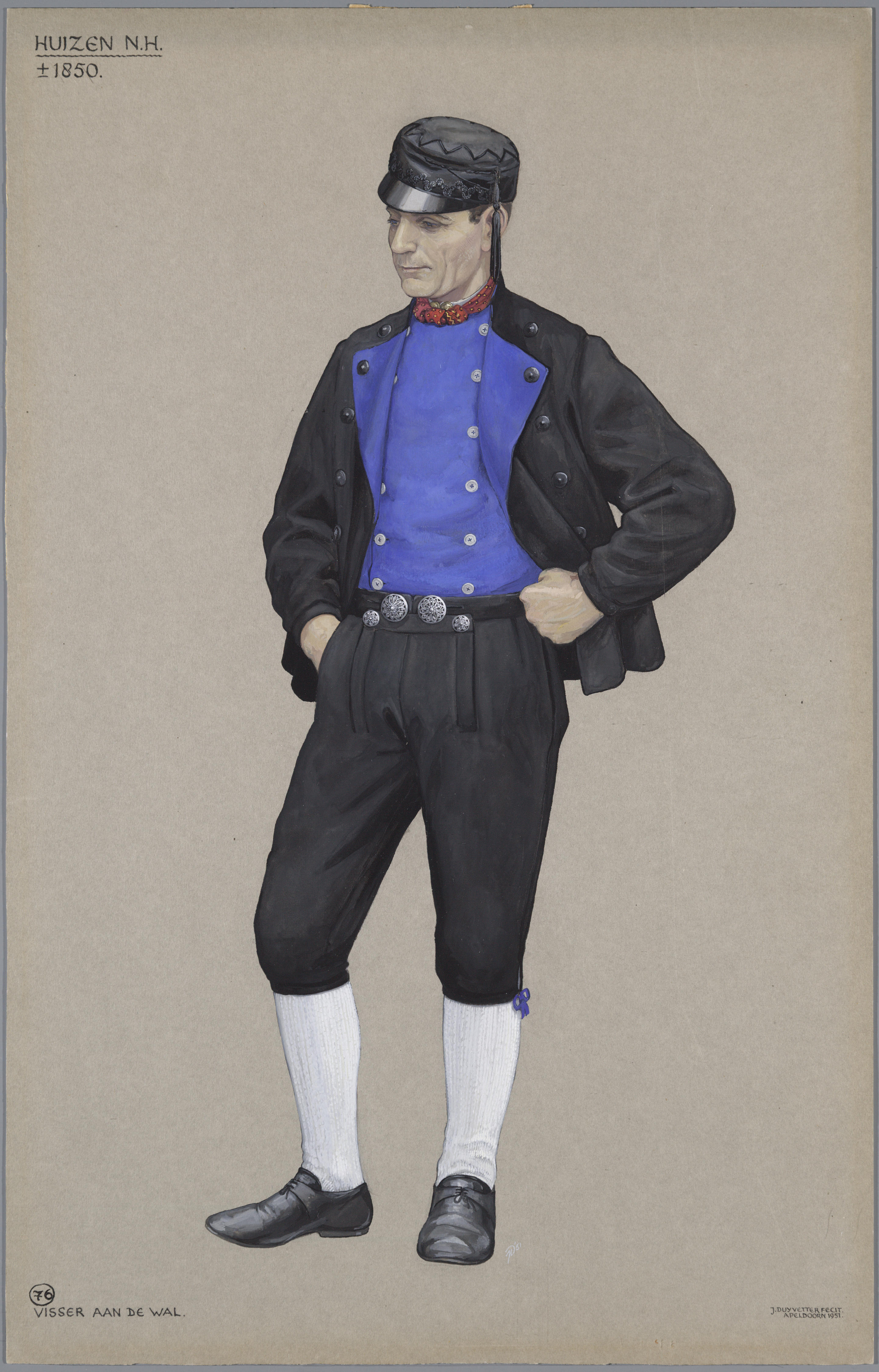 Visser aan de wal uit Huizen rond 1850.