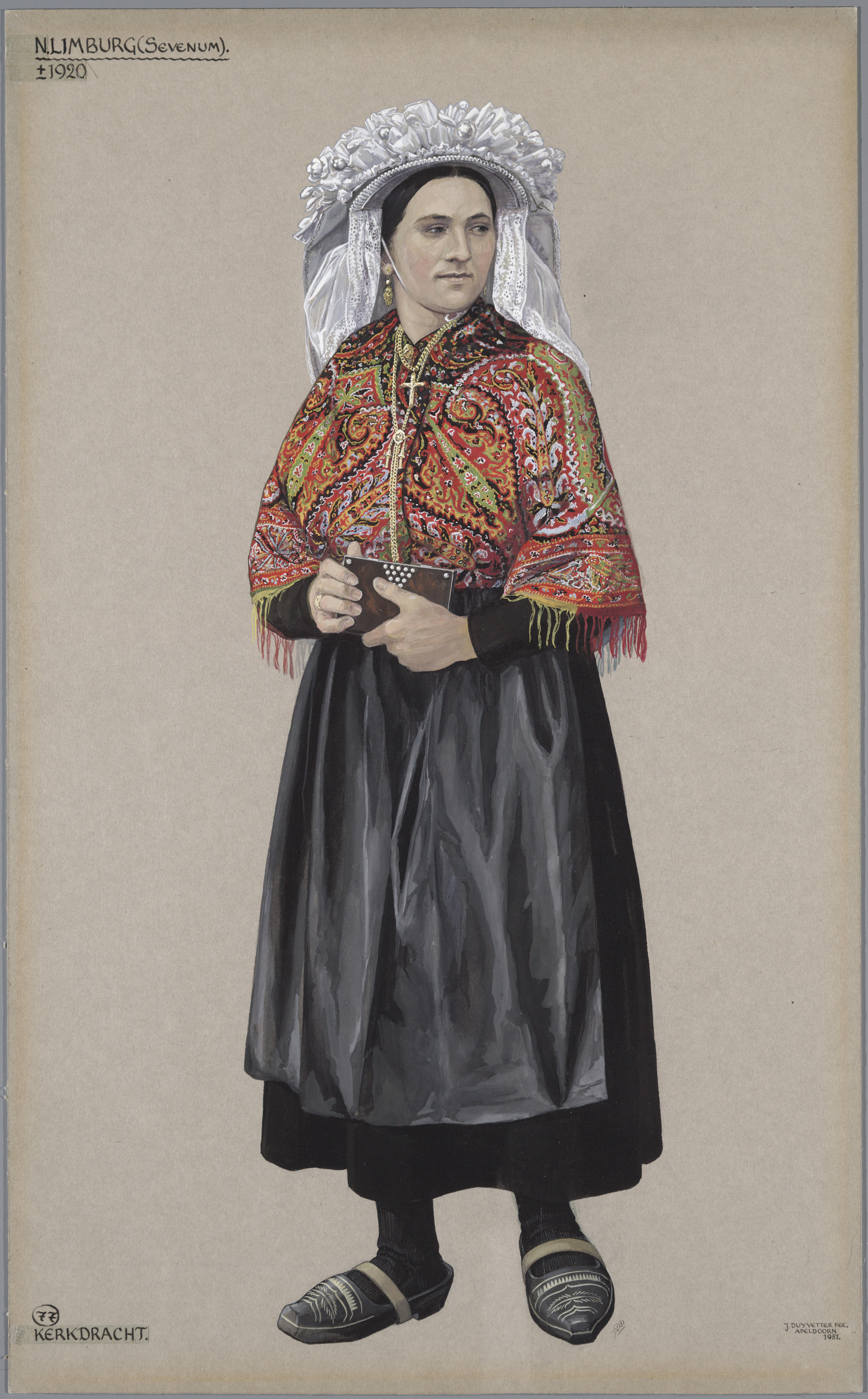 Vrouw in kerkdracht uit Sevenum rond 1920.