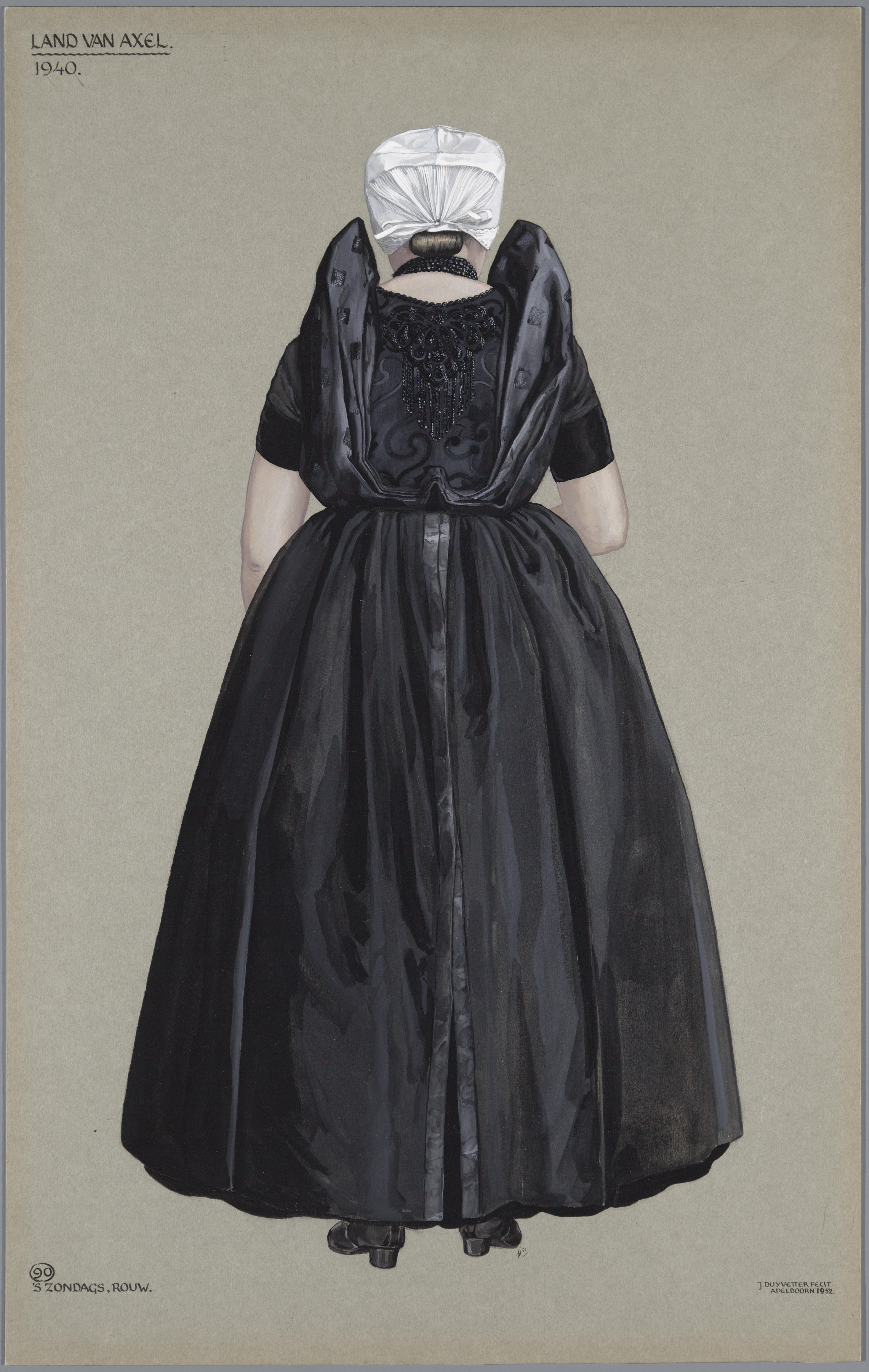 Vrouw in zondagse rouwdracht, Land van Axel 1940