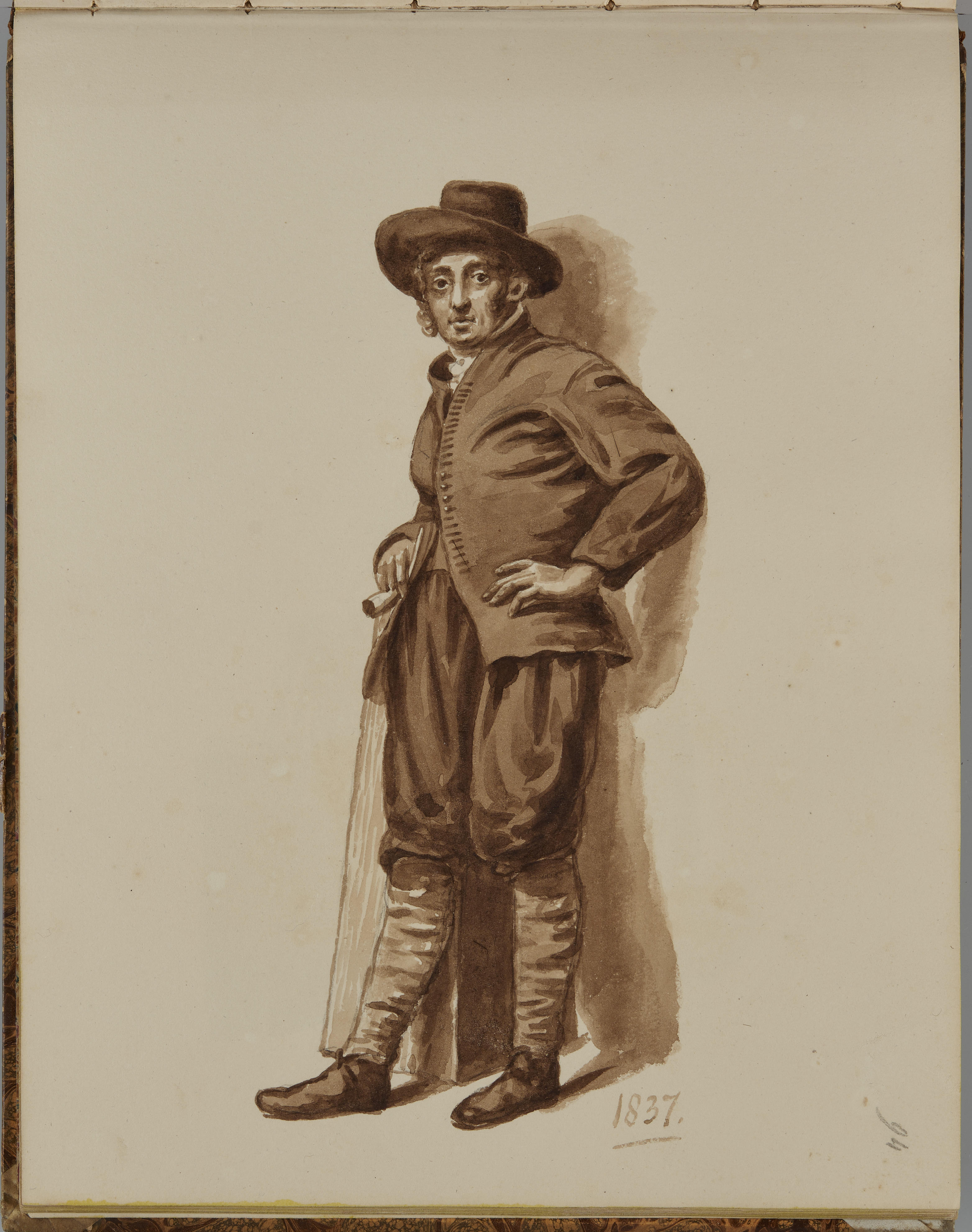 Sepiatekening van een Marker man, afkomstig uit het schetsboek van J. Looyen (plaat 94).