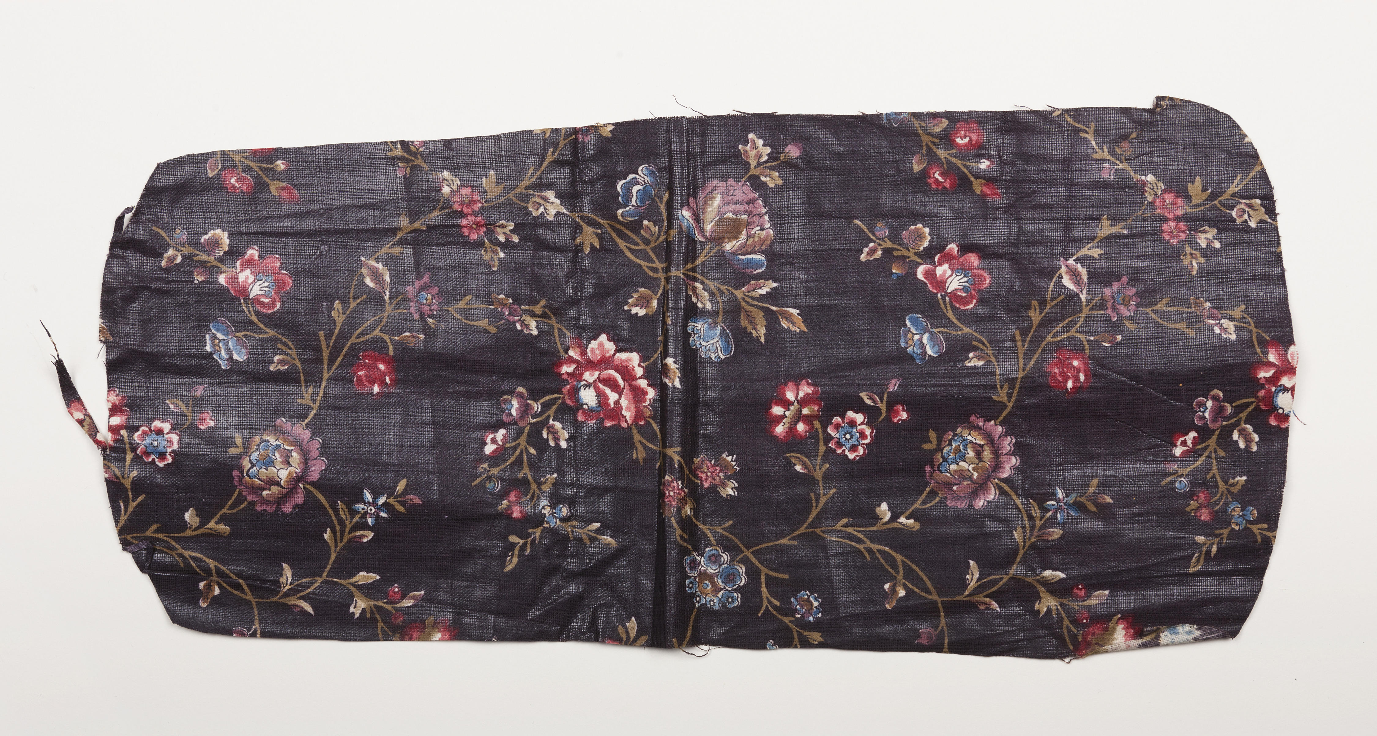 Katoen, bedrukt met bloemmotieven op een donkerbruin fond, zogenaamde nachtgrond. Deze stof is omstreeks 1760 in Europa gedrukt. Dergelijke Europese katoendrukken werden zowel in modedracht als in de Nederlandse streekdrachten gebruikt.