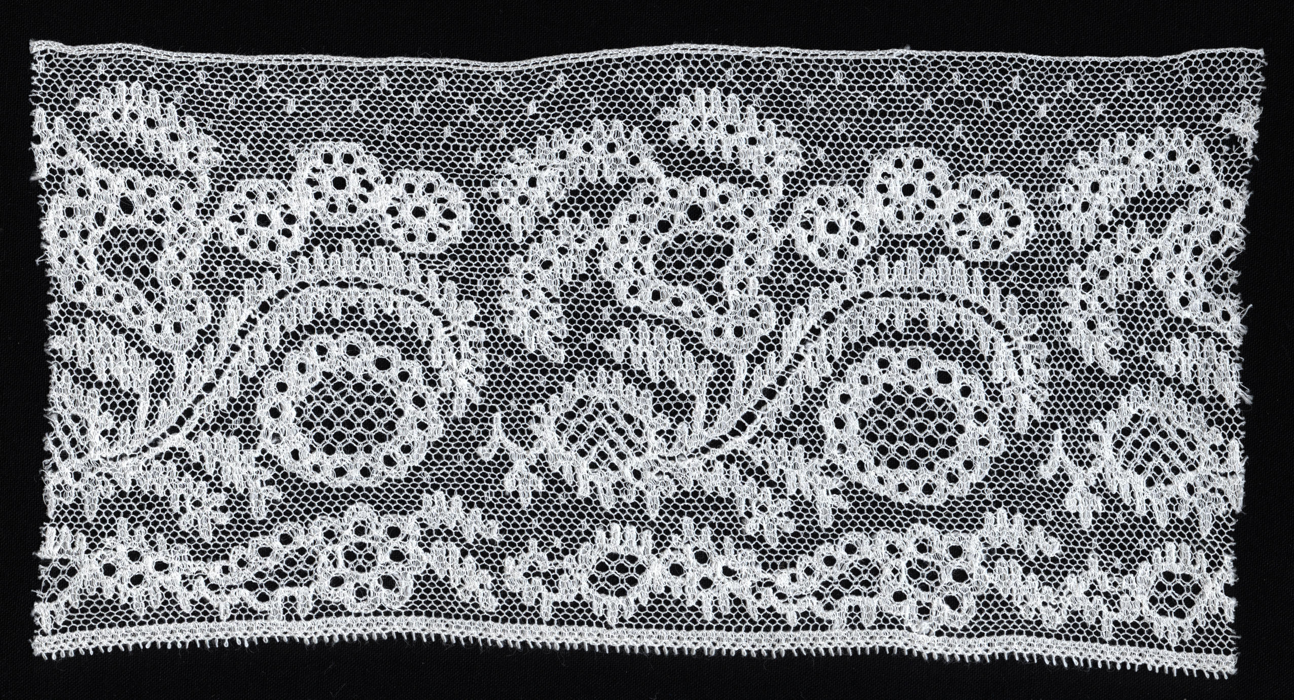 Strook machinale kant met een rapport van 9,5 centimeter. Deze kant is vrij algemeen gebruikt in de verschillende Nederlandse streekdrachten. Hij komt onder meer voor als achterstrook aan 'knipmutsen' in Oost-Nederland, als voorstrook aan de hullen van Urk en aan de mutsen uit de vissersdorpen langs de Noordzeekust.